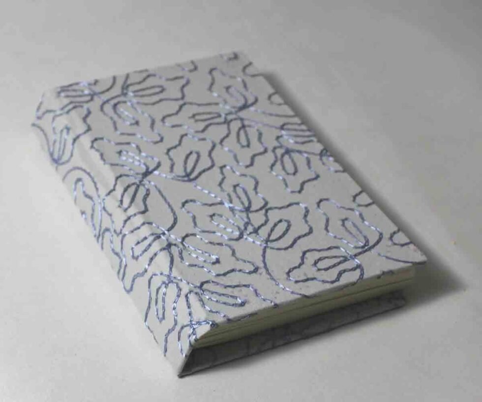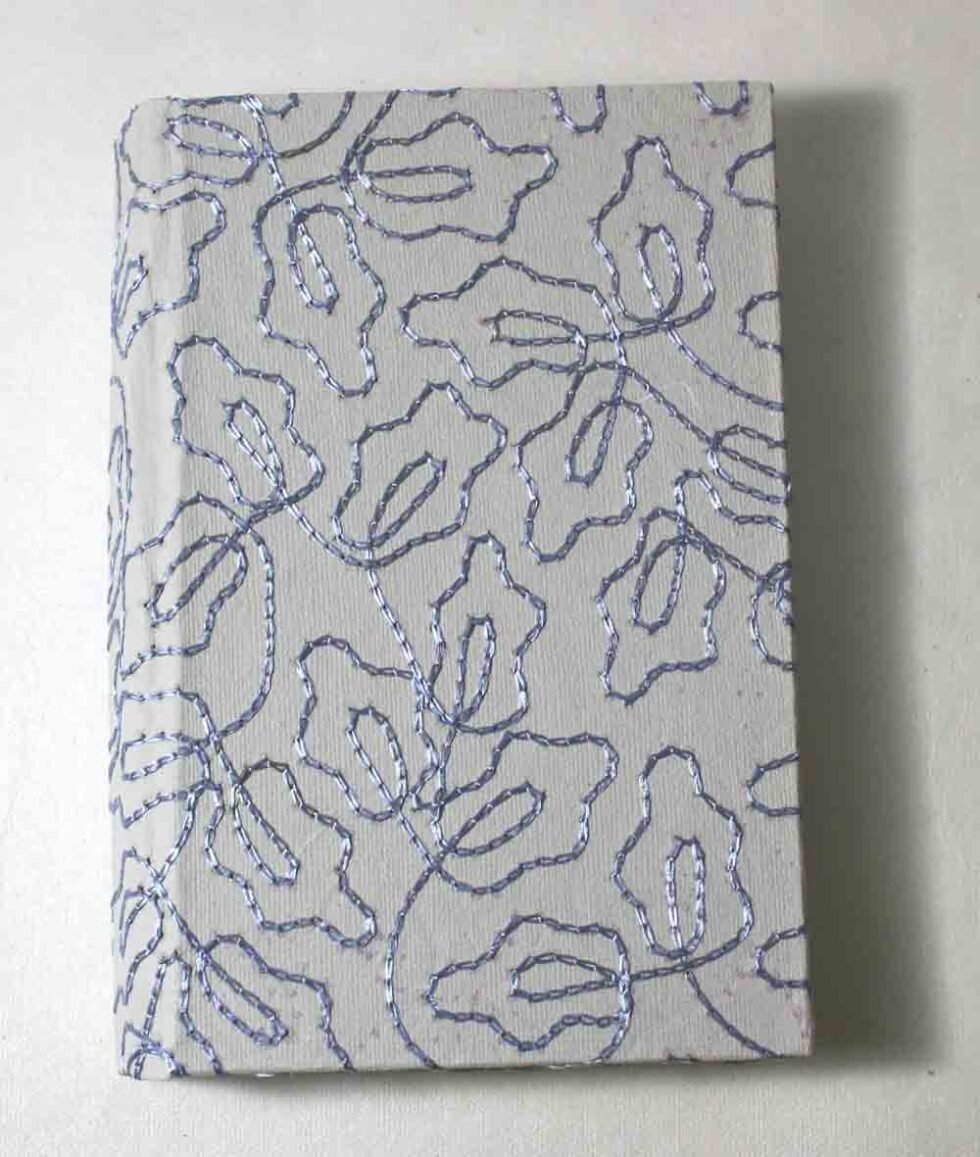 Be the first to review “Grey color sheet with blue silk yarn embroidery cover A6 notebook”