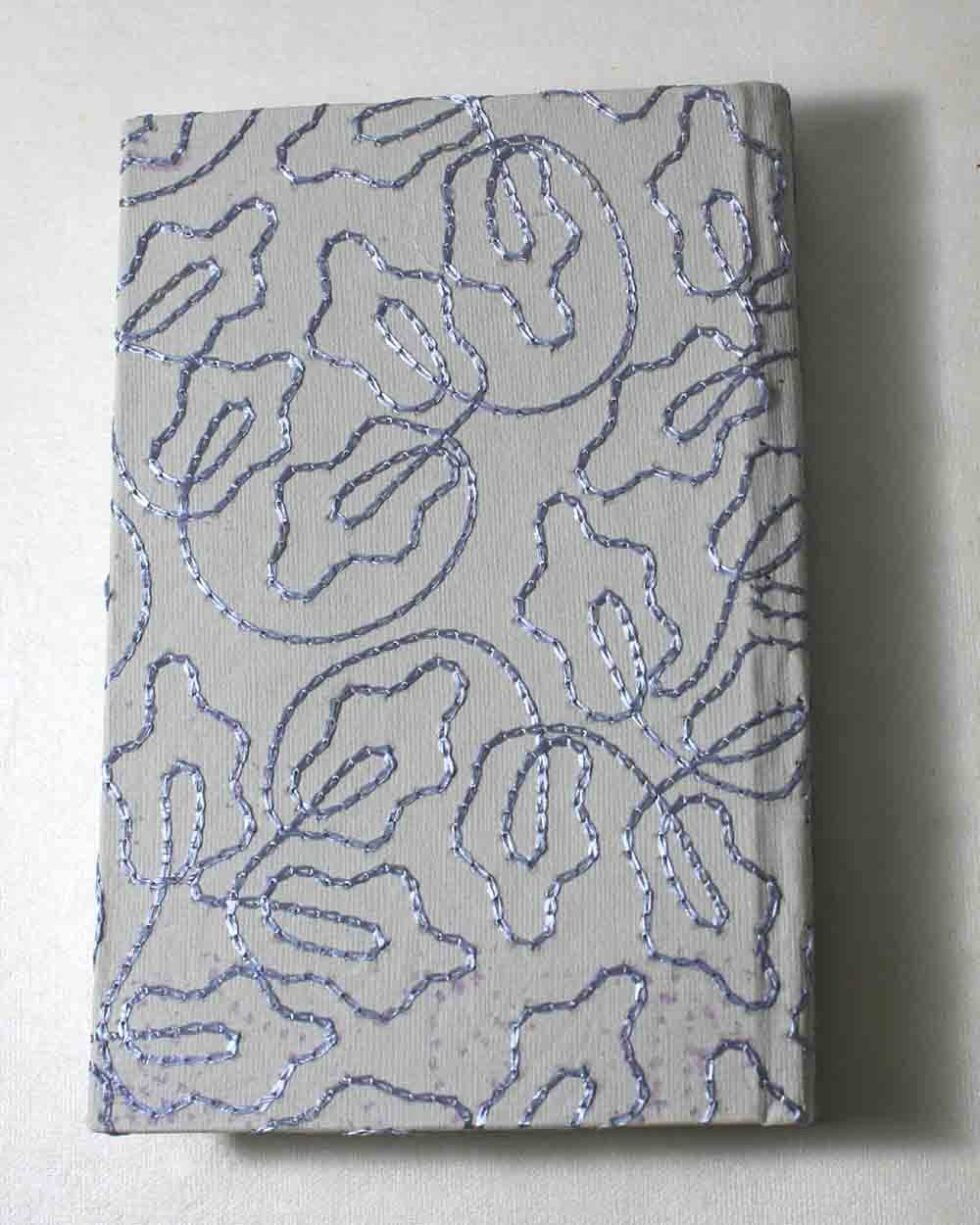 Grey color sheet with blue silk yarn embroidery cover A6 notebook