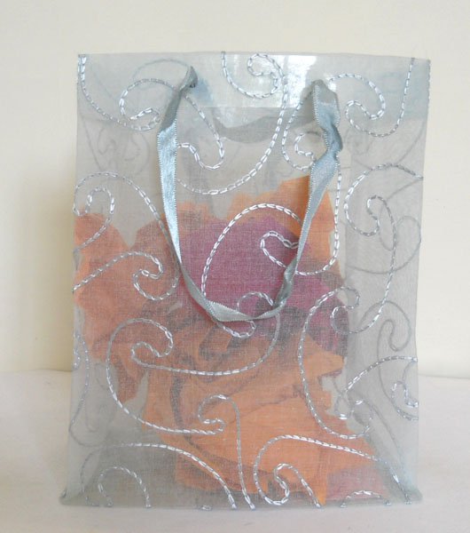 Fine quality transparent organza fabric 100% cotton in grey color with matching embroidery all over. Supported by poly acetate collars & bottom to make it sturdy and for better use!