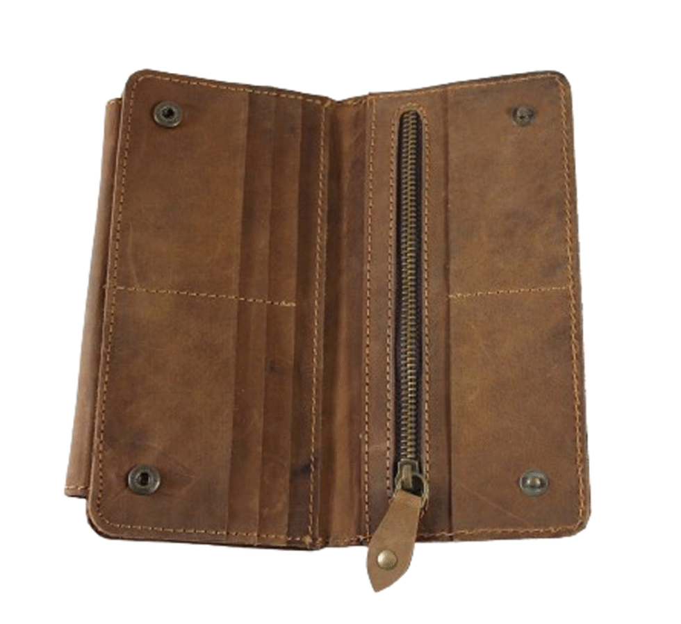 Hand crafted & stitched clutch made from premium buffalo leather, with a wonderful smell, its soft feeling and delicate, yet super tough. Rustic designs are taken from decades old traditional patterns. Interior is made of khadi cotton fabric in natural or matching colour, having multiple pockets for cash, credit cards and valuable documents and other stuff like mobile phone. Smart piece of craftsmanship allowing lots of space in a small ‘elagant to carry’ clutch, having quality zips as closure.
