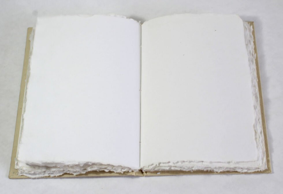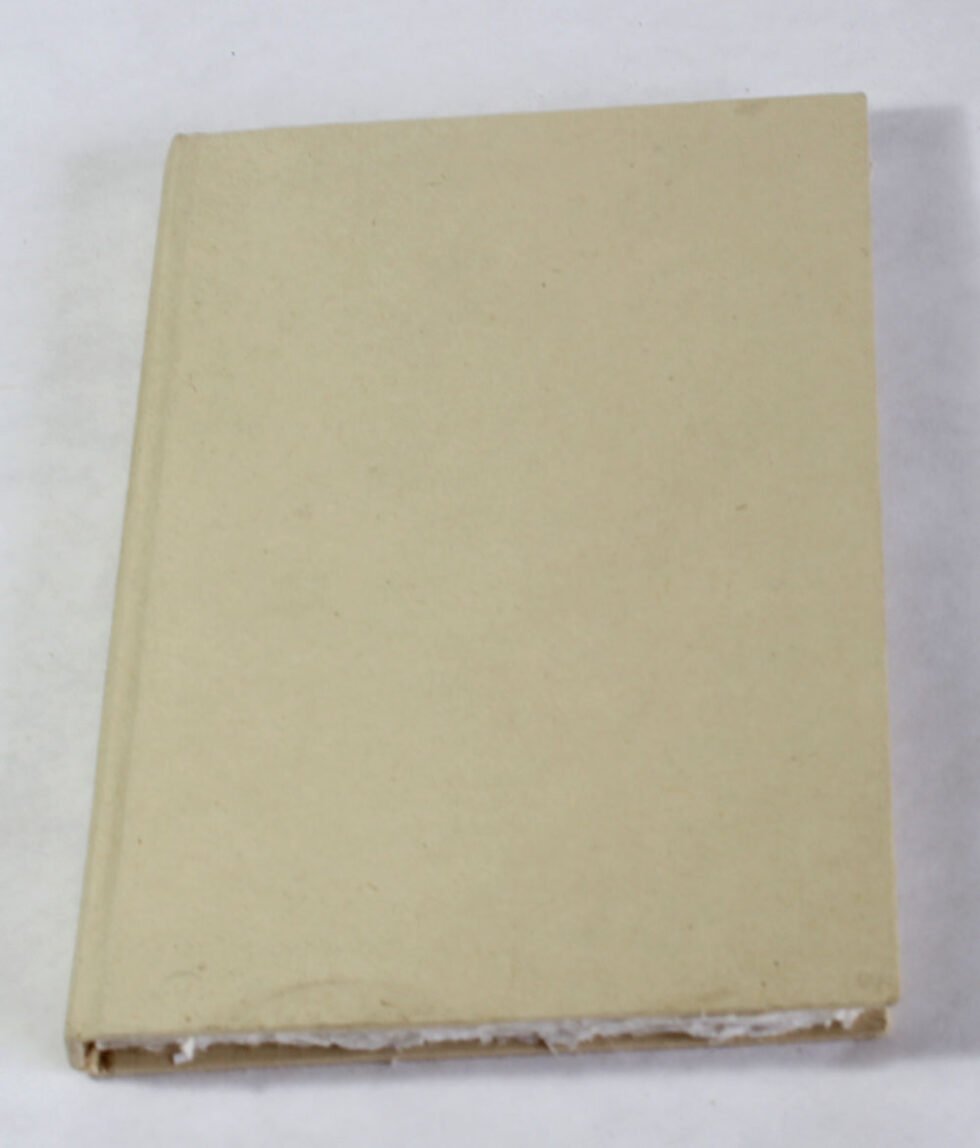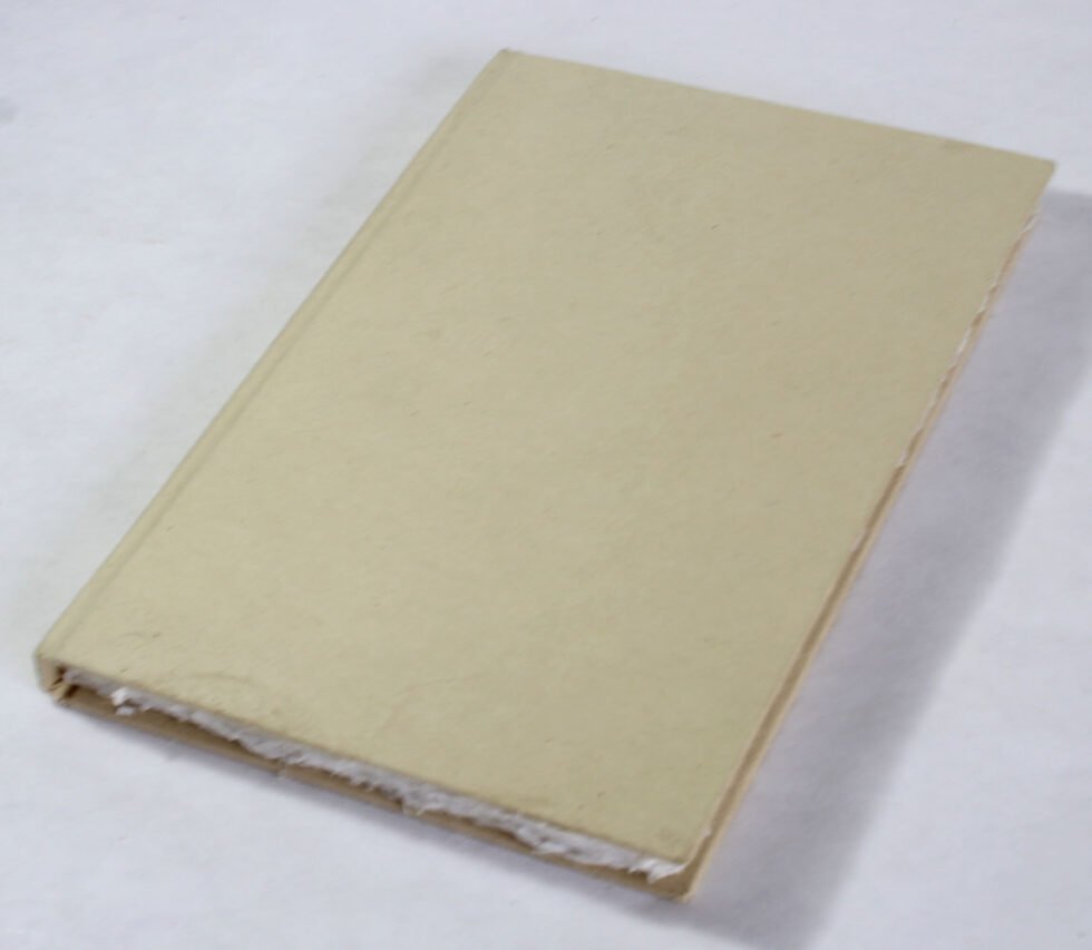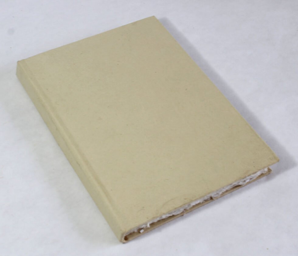 Hard hemp paper cover notebook with natural edges 60 sheets / 120 pages of recycled cotton handmade deckledge paper. Excellent paper to write upon which never bleeds with ink or even in painting! Truely recycled paper, handmade paper, wood free paper – with Ph level 7 or higher – its an acid free paper too! Can be branded and customized.