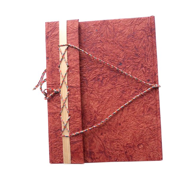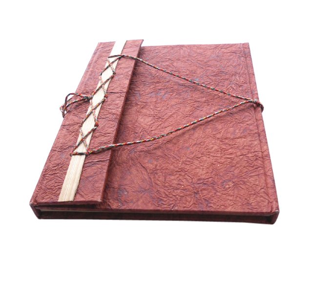 Cream colour paper with leather paper on hard cover. Hard cover notebook with 48 sheets / 96 pages of recycled handmade cotton paper. Hand bound with specialist artisans while the paper is wood free, acid free and never bleeds while using ink pen. Wonderful green life style product – can be branded or customized and excellent item for personal / corporate gift!