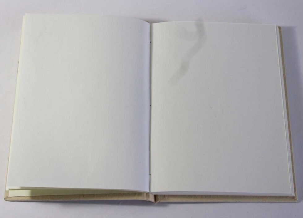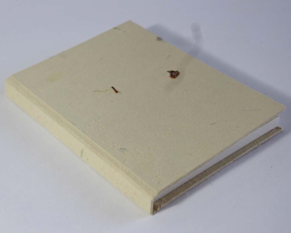 Hard cover notebook with 48 sheets / 96 pages of recycled cotton handmade paper inside. Lovely paper to write upon, totally wood free, acid free and never bleeds even when written upon by an ink / fountain pen.