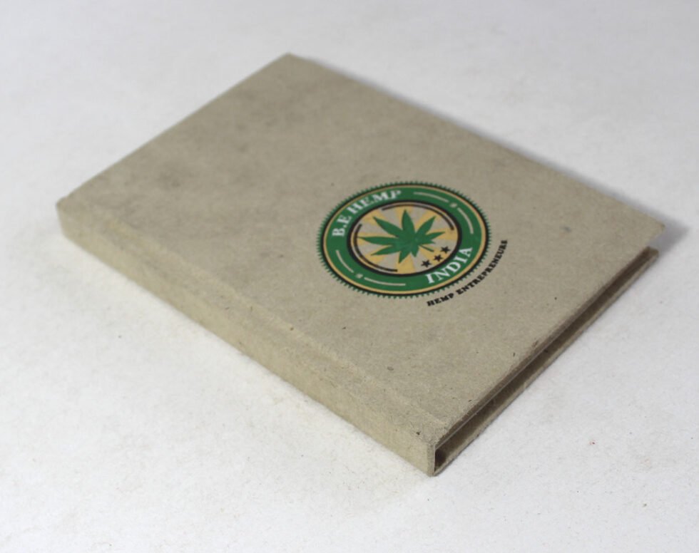 Hard cover hemp notebook with printed logo and a hemp leaf right in the middle of its front cover. This shows we can brand and customize the notebooks for our clients. Inside is 48 sheets / 96 pages of ‘Hemp Paper’ in natural shade of 70 GSM. Excellent paper to write upon which never bleeds with ink or even in painting! Truly recycled paper, handmade paper, wood free paper – with Ph level 7 or higher – its an acid free paper too!