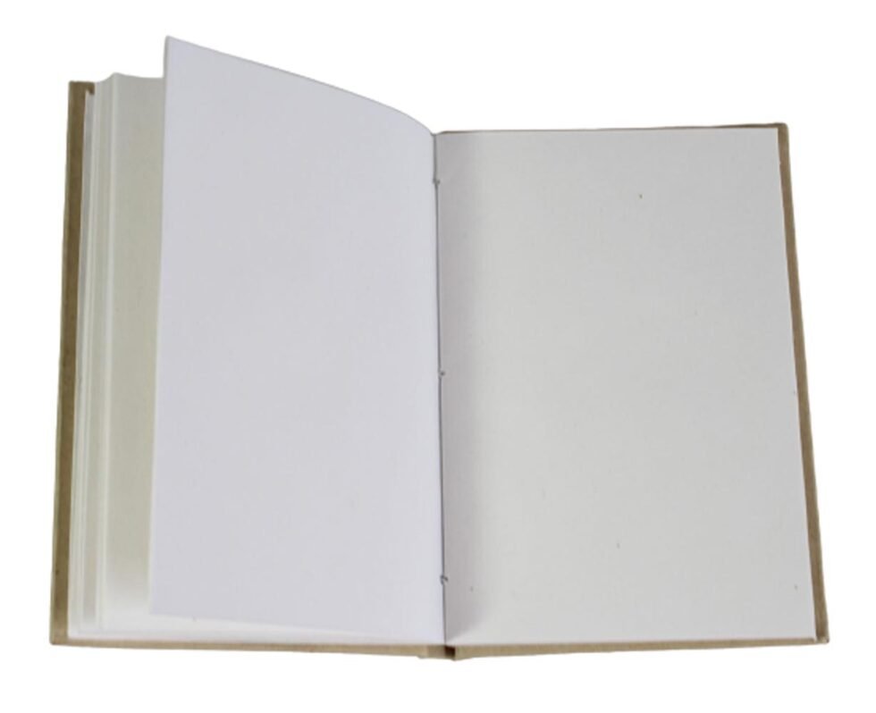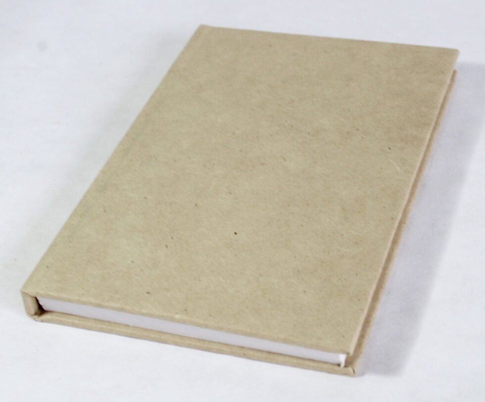 Hard hemp paper cover notebook with 48 sheets / 96 pages of recycled cotton handmade paper. Excellent paper to write upon which never bleeds with ink or even in painting! Truly recycled paper, handmade paper, wood free paper – with Ph level 7 or higher – its an acid free paper too! Can be branded and customized.