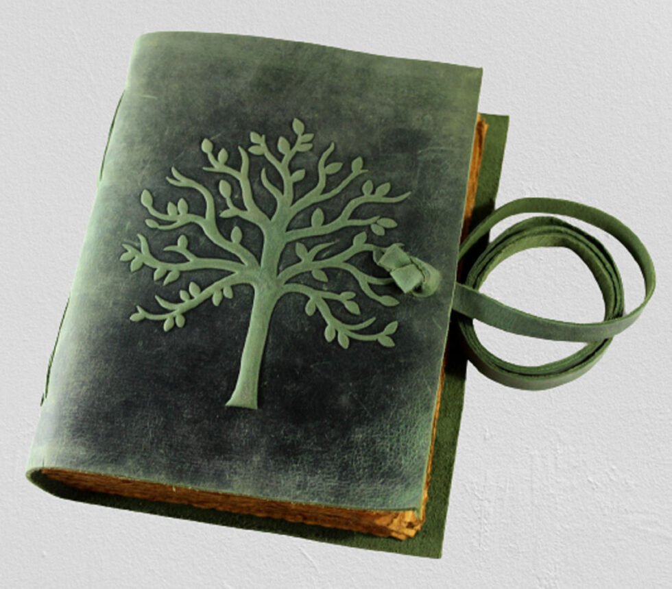 Premium buffalo leather journal with rustic spine stitching and embossed tree design. Includes 120 natural-edged blank sheets (240 pages) of recycled cotton paper—wood-free, acid-free, and ink-friendly. A perfect gift for all ages.