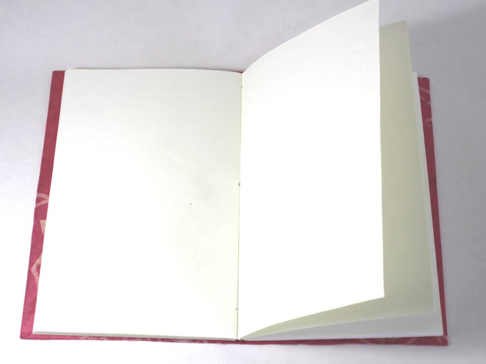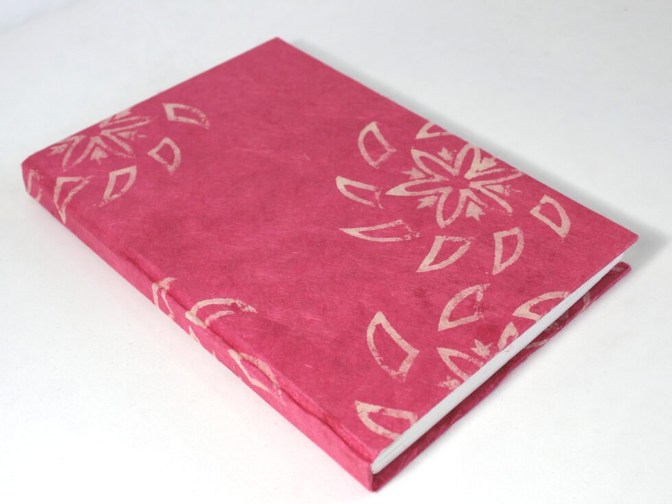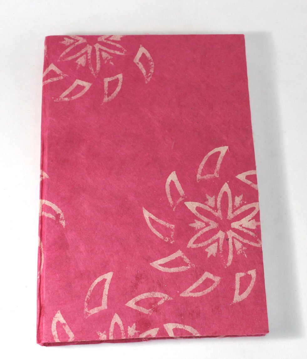 Handcrafted artisan notebook with a recycled handmade paper cover and 96 pages of smooth, bleed-proof, acid-free paper. Ideal for gifting.