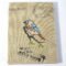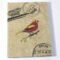 Soft cover antique canvas notebook with 48 sheets (96 pages) of handmade recycled cotton paper, featuring a multicolor bird print and vintage world postal stamps—ideal as a travel journal or a customizable corporate gift.