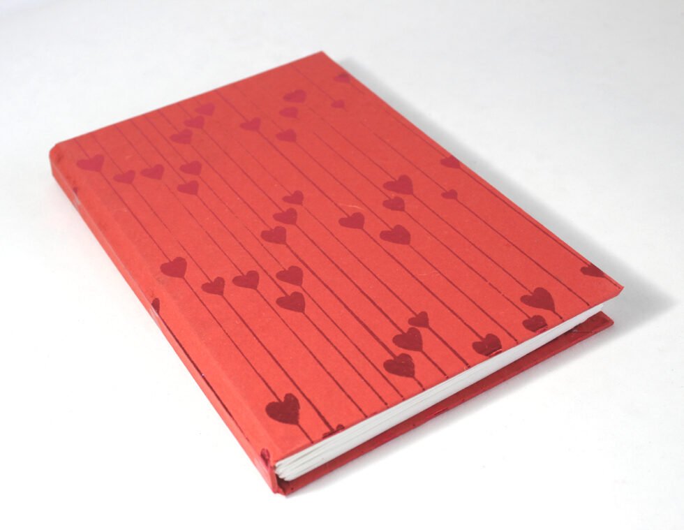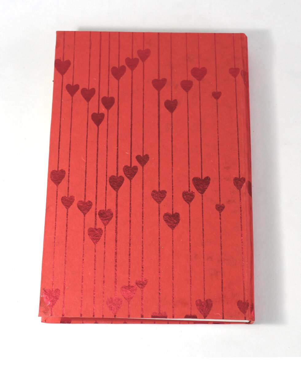 Handcrafted artisan notebook with a recycled handmade paper cover and 96 pages of smooth, bleed-proof, acid-free paper. Ideal for gifting.