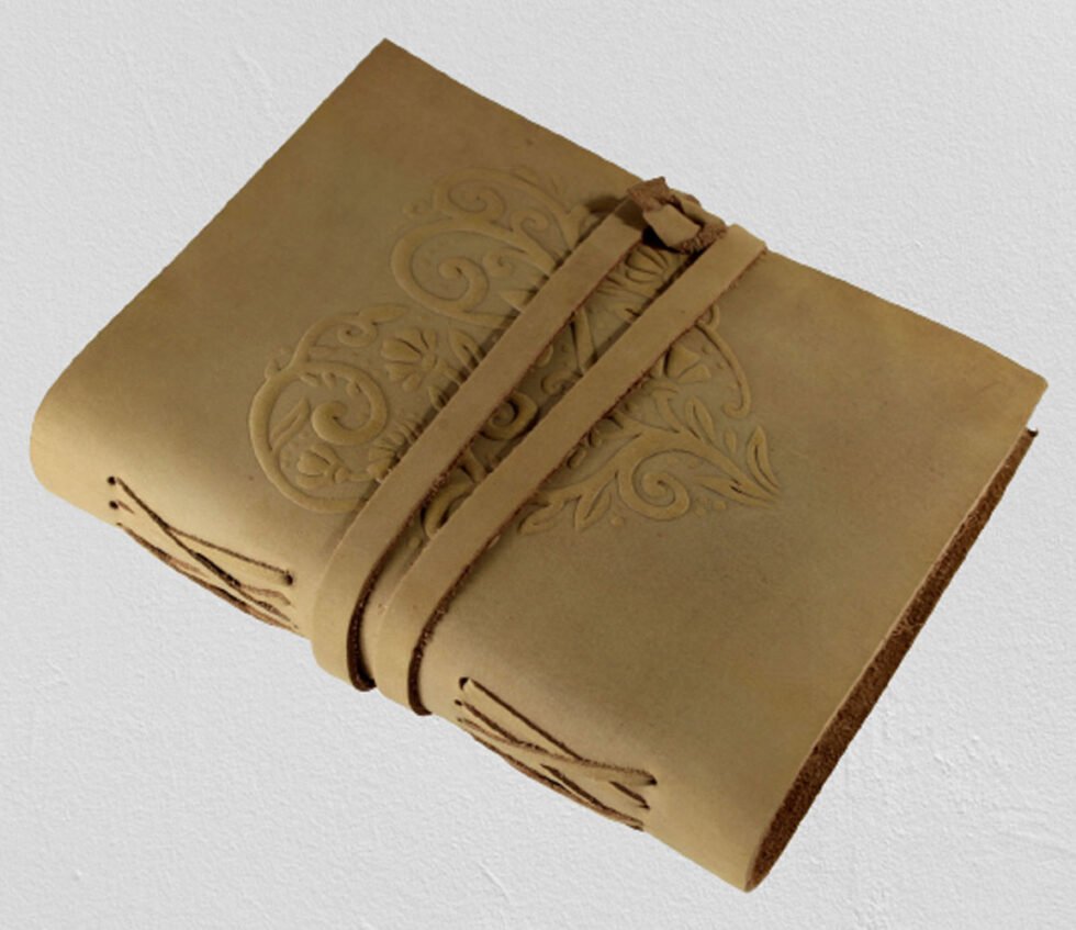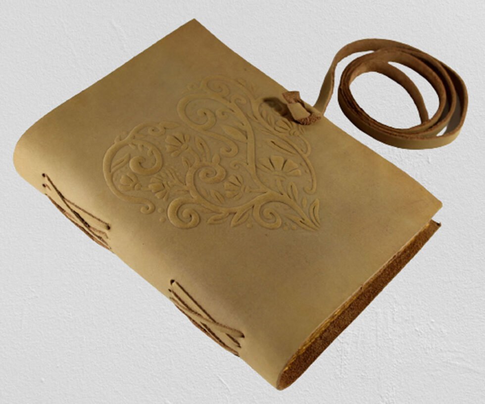 Made from premium buffalo leather, with a wonderful smell, its soft feeling and delicate, yet super tough. Rustic charm with decorative leather strings’ stitching on the spine adds antique magic to this lovely vintage journal Front cover is embossed with the heart design beautifully with the hot stamping. Draw, write and sketch to your heart’s content on the 120 vintage looking natural edged blank unlined sheets (or 240 pages) of recycled cotton handmade paper. Paper is wood free, acid free and does not bleed with the ink pen! A perfect present for men, women, students, travellers of all age!