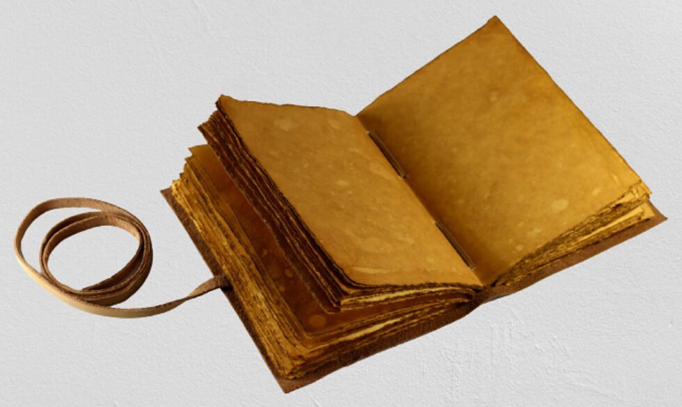 Premium buffalo leather journal with heart embossing and rustic spine stitching. Includes 120 vintage natural-edged sheets (240 pages) of recycled handmade paper — wood-free, acid-free, and ink-friendly. A perfect gift for all ages!