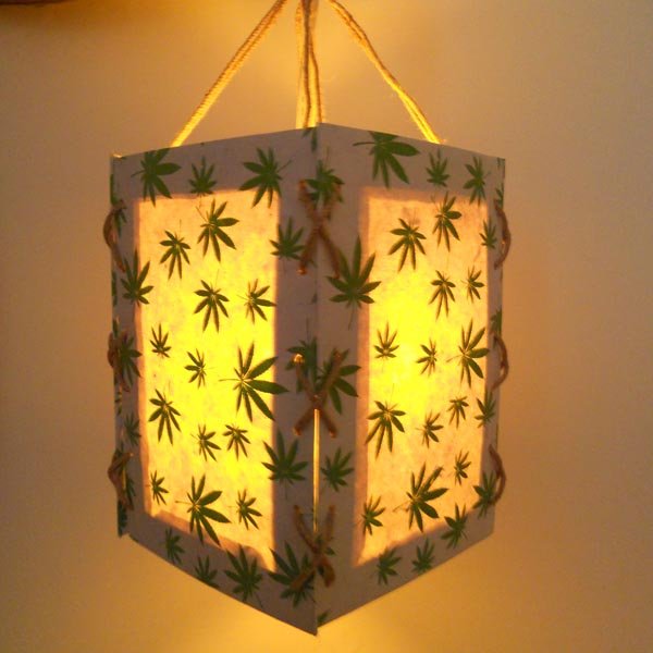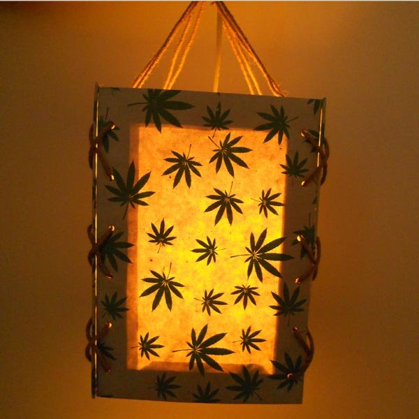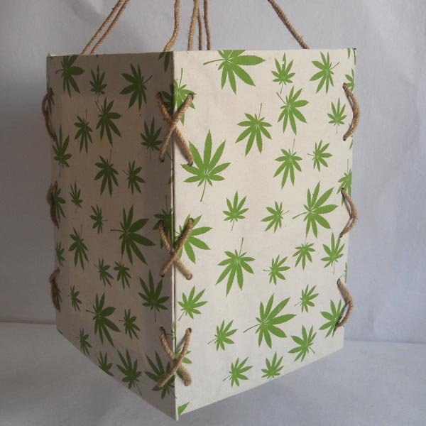 Lamp shades made of solid cardboard and 100% hemp paper printed hemp leaves all over it. Any other color of the paper, any other design to be printed can be given. We do branding and can print given logos / details!