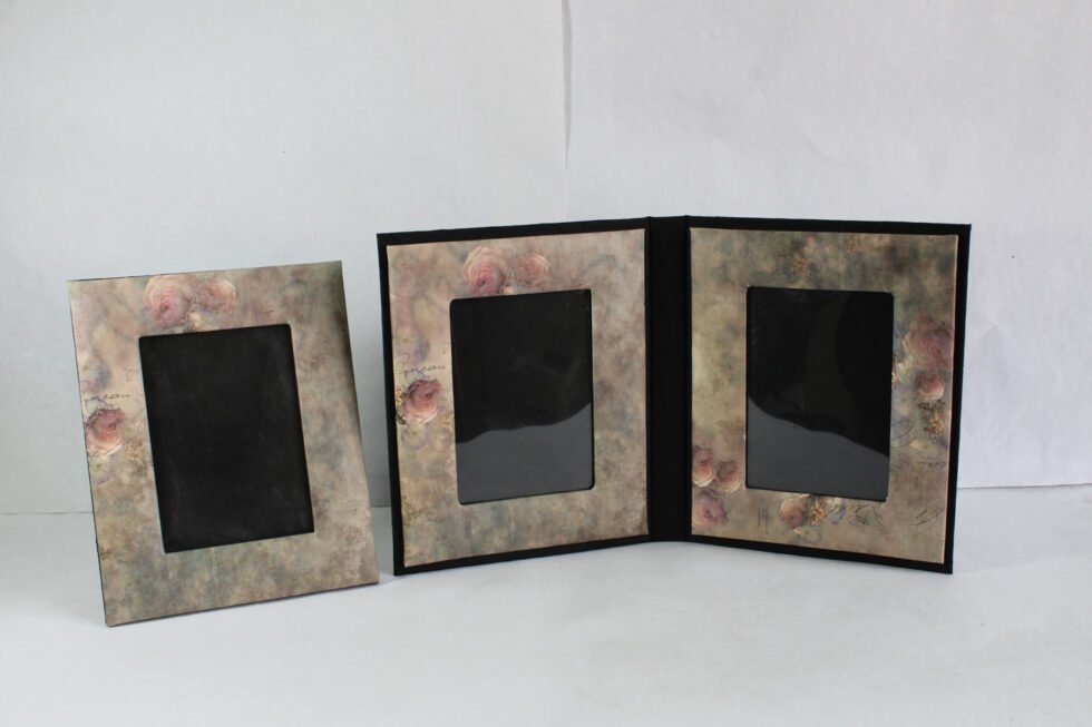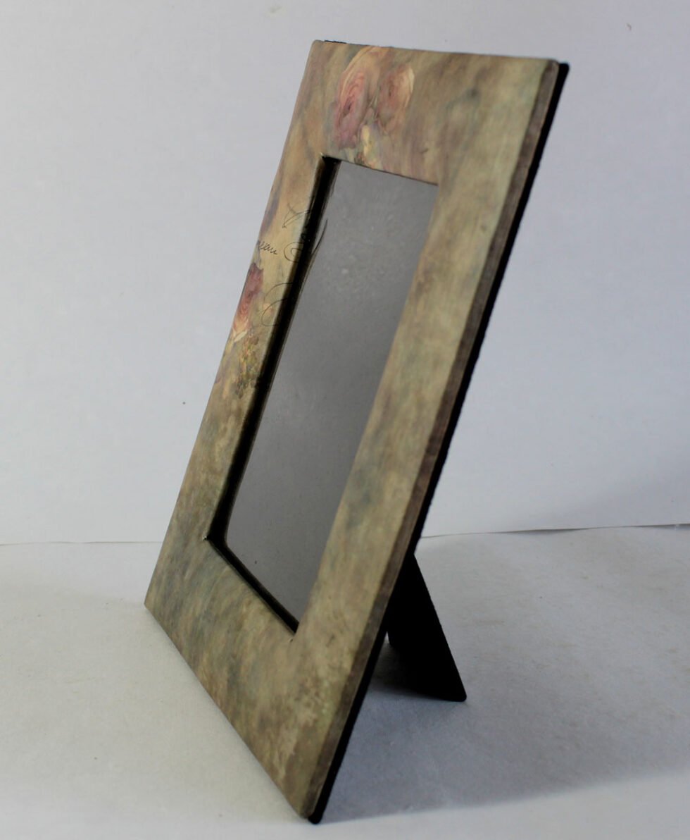 Photo frame made of exclusive offset printed cotton recycled paper used ornament ally on recycled cotton handmade paper. Further, foam & cardboard is used to shape it up. A lovely ‘Green Life Style’ product for home decoration. Acetate is provided in the middle to protect photo.