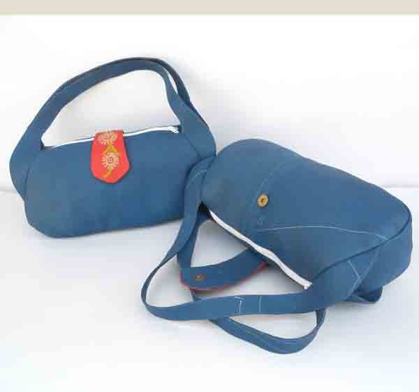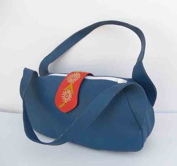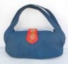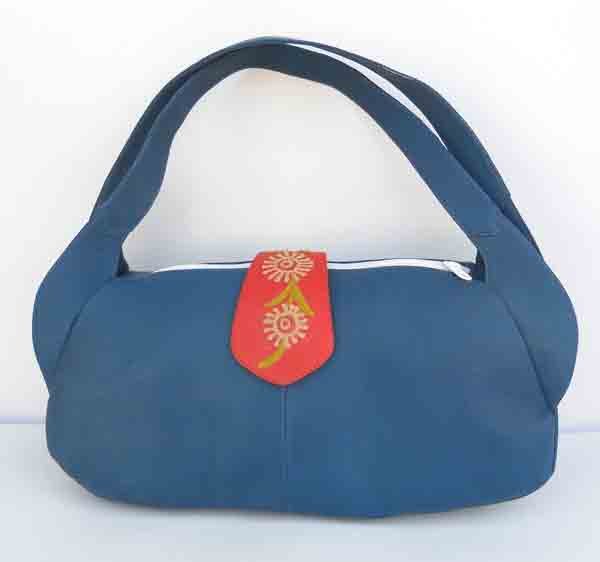 Ink blue color leather with red color embroidered leather magnetic closure.