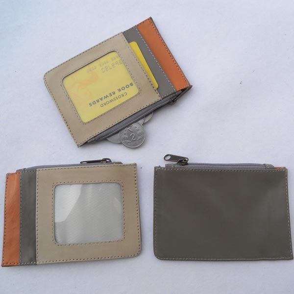 Light grey leather on the front with multiple colour leather & pockets. Black leather at the back.