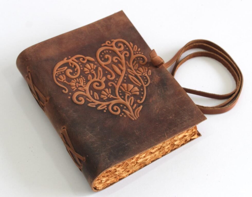 Red heart vintage leather journal.