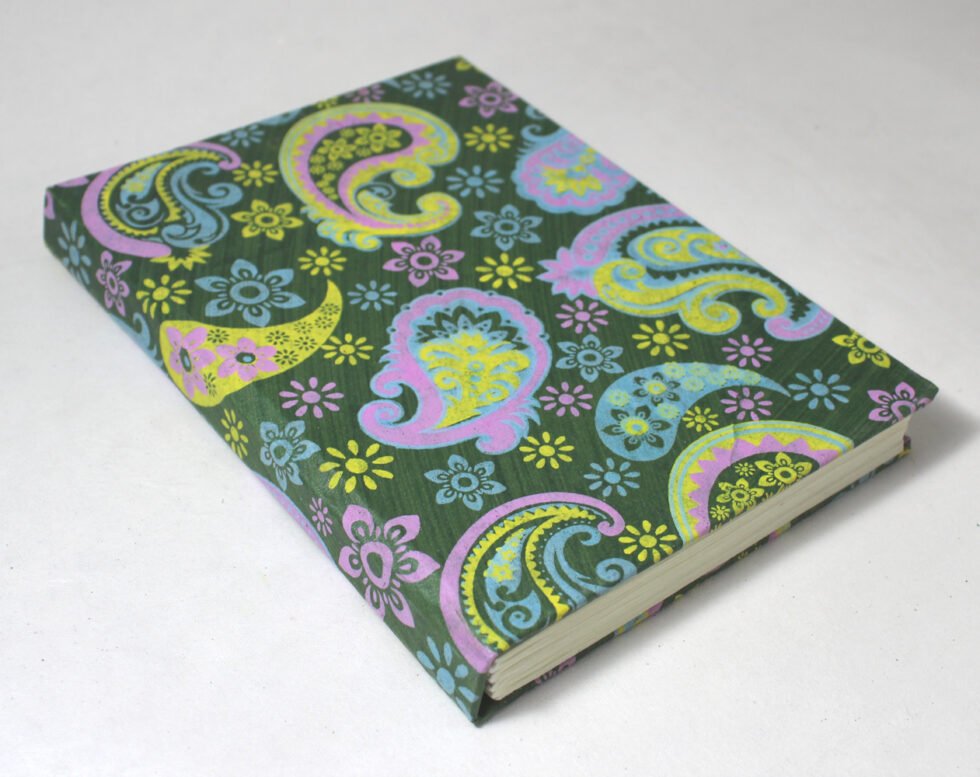 Hardcover notebook – 48 sheets (96 pages) of smooth, recycled cotton paper. Wood-free, acid-free, ink-friendly, and handcrafted with decorative covers.