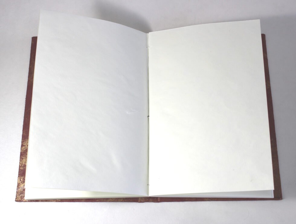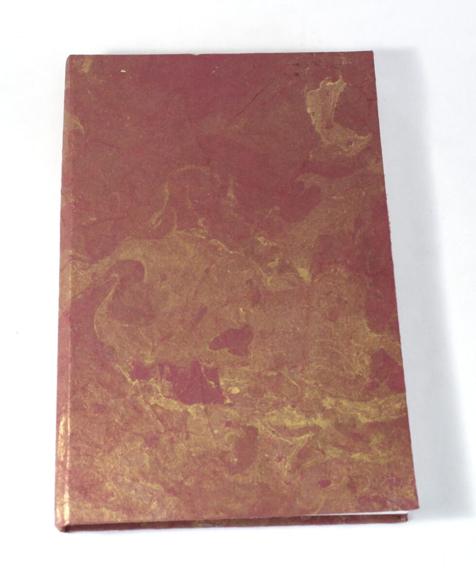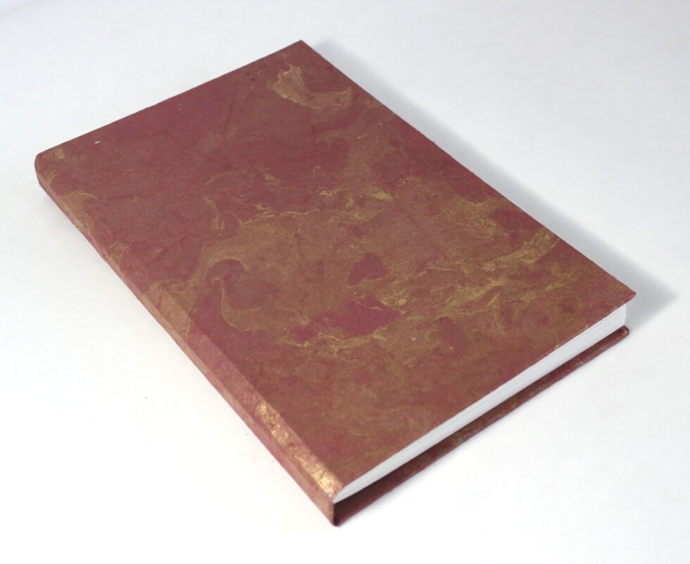 Metallic gold color marble on maroon color sheet as cover. Hard cover notebook with 48 sheets / 96 pages of recycled handmade cotton paper. Hand bound with specialist artisans while the paper is wood free, acid free and never bleeds while using ink pen. Wonderful green life style product – can be branded or customized and excellent teen for personal / corporate gift!