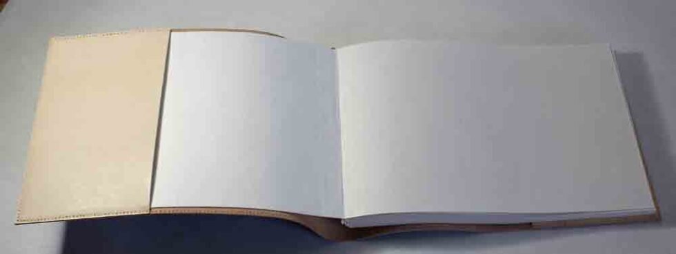 Modern style goat leather journal with 80 sheets / 160 pages of recycled cotton handmade paper. The refillable guest book / journal, capturing all your moods and feelings inside it. The paper is smooth, absolutely wood free, acid free and never bleeds even with ink pen.