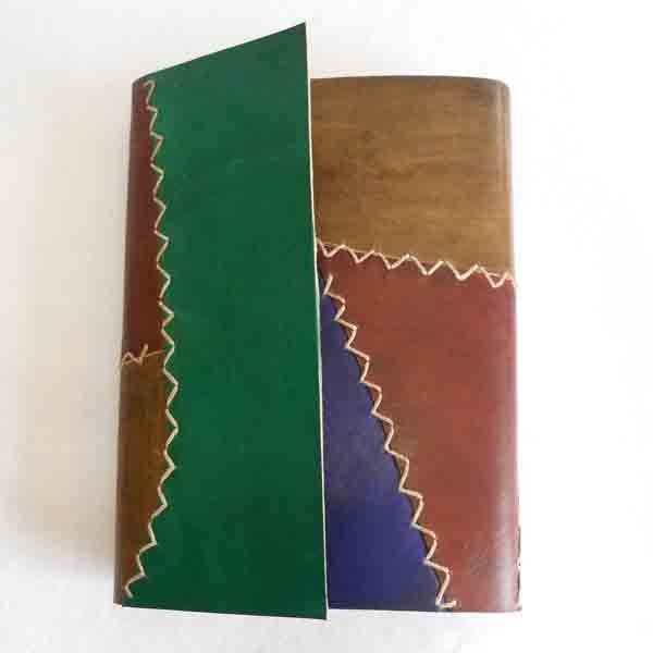 Ethnic style goat leather journal with 72 sheets / 144 pages of recycled cotton handmade paper. The gypsy looking journal matches with the travel theme and serves a good purpose while writing on a vacation or trip…capturing all your moods and feelings inside it. The paper is smooth, absolutely wood free, acid free and never bleeds even with ink pen.