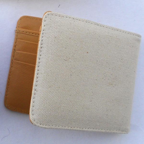Natural canvas & light brown leather with multiple pockets inside for multiple uses