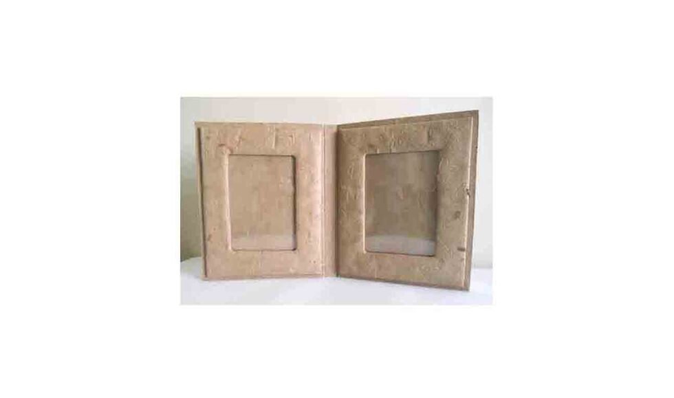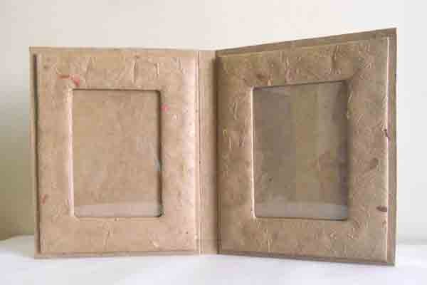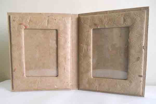 Double photo frame from natural color Garden paper from 100% Lokta fiber. Excellent for home decoration or offices. A truly ‘Green Life Style’ product – rich and exclusive. Other materials used in this are solid card board and an acetate sheet.