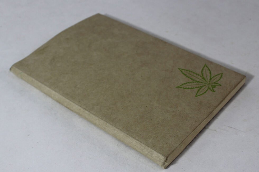 Soft cover hemp notebook with natural Hemp Paper and a printed leaf on the right hand corner. Inside is 48 sheets / 96 pages of ‘Hemp Paper’ in natural shade of 70 GSM. Excellent paper to write upon which never bleeds with ink or even in painting! Truly recycled paper, handmade paper, wood free paper – with Ph level 7 or higher – its an acid free paper too!