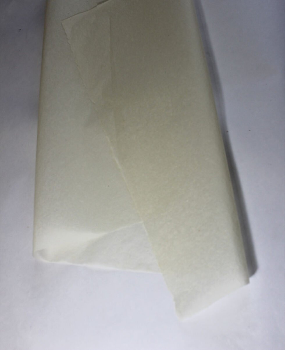 Tissue paper white color sheet. 100% banana fiber paper sheet. Absolutely lignin free (wood free) & acid free paper made of banana fiber extracted from the harvested trunk of banana. A beautiful paper out of waste management!