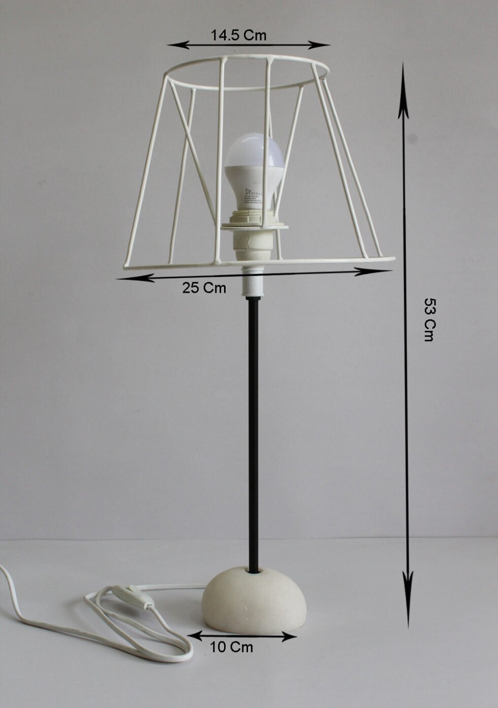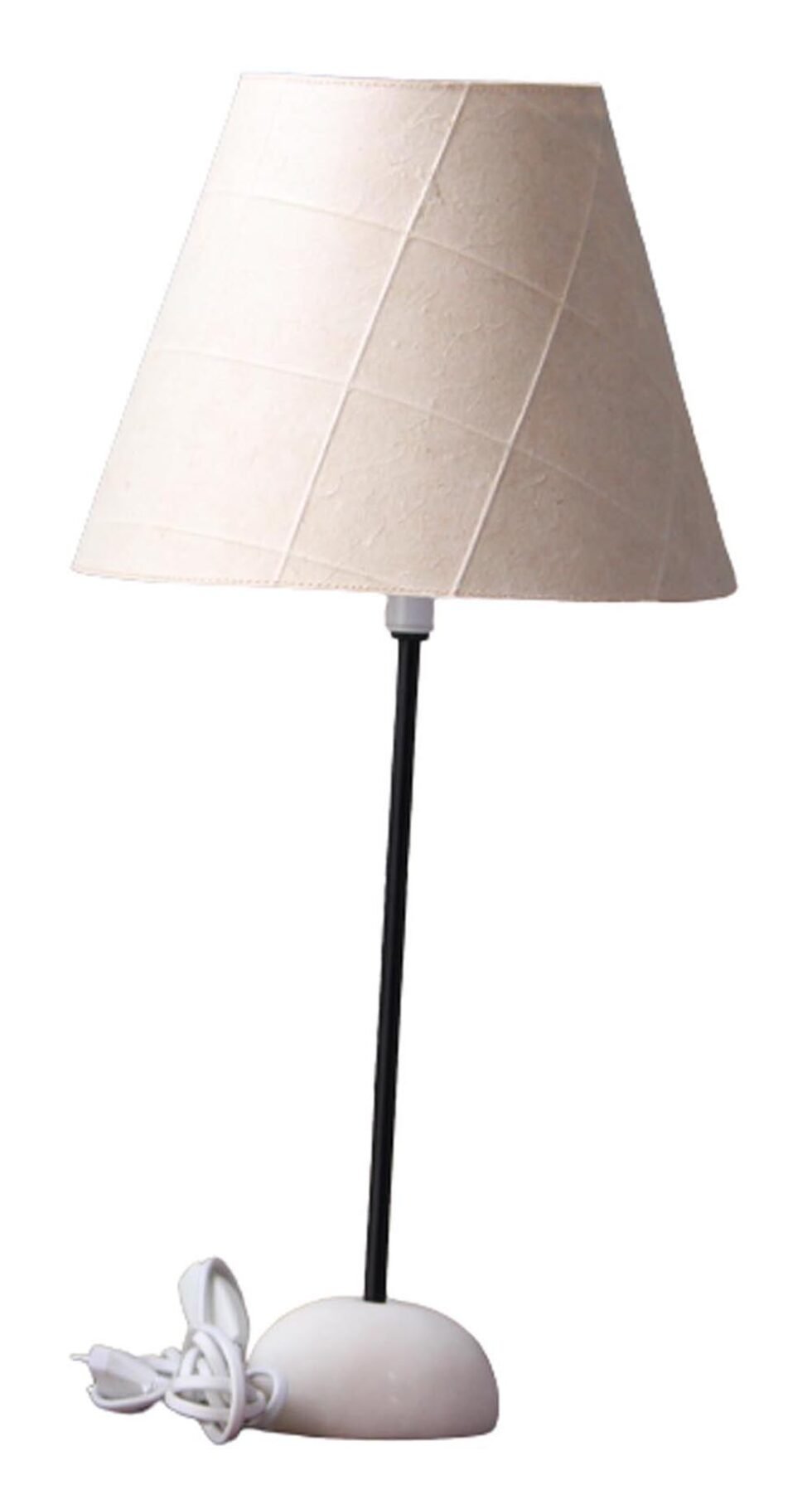 Lampshade from 100% Hemp fiber organic paper – purely recycled & handmade. A truly aesthetic décor catering to high class taste satisfying environmental concerns. Handcrafted by our premium artisans for the top quality international markets. A thin lining of acetate is given underneath the paper for the durability of the shade! The light shimmering out is so unique and carries a classy theme for any type of room / balcony / garden & bar. Tiny incursions of the dyed or natural Hemp fiber along with sandwiched cotton thread in between paper sheets release spectacular light around. Shade supported by a thin wrought iron pipe as stand. On the top is the standard bulb holder while for the base there is sturdy white high quality marble 0.750 kg stone in oval shape! The lamp looks stunning yet simple – a wonderful handcrafted piece for elegant décor. A 2 meter long wire is given to its sturdy marble base with on / off switch facility.