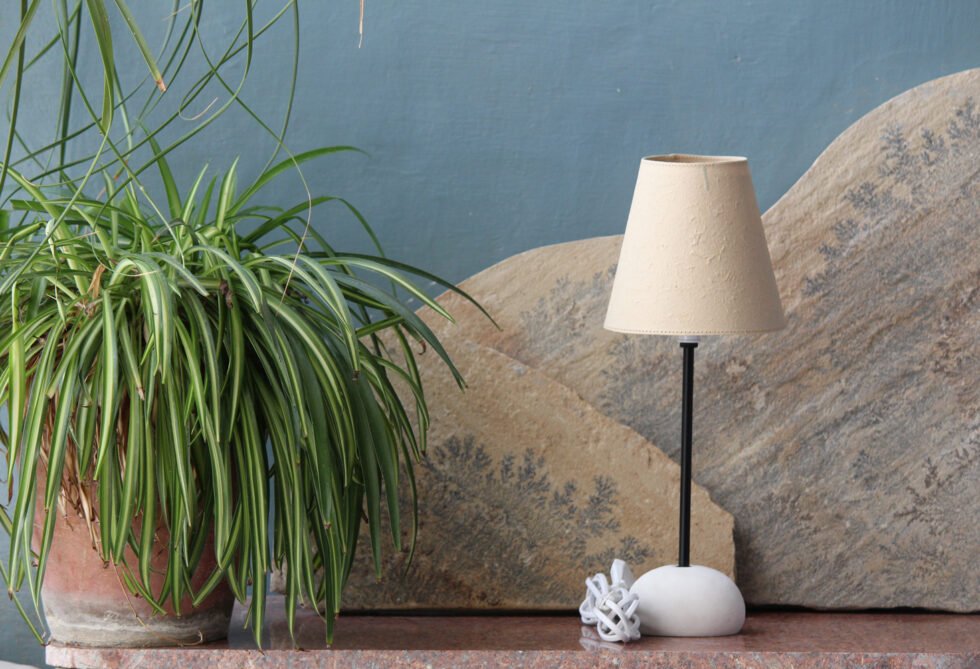 Sustainable Hemp Flower Petal Shade With Table Lamp
