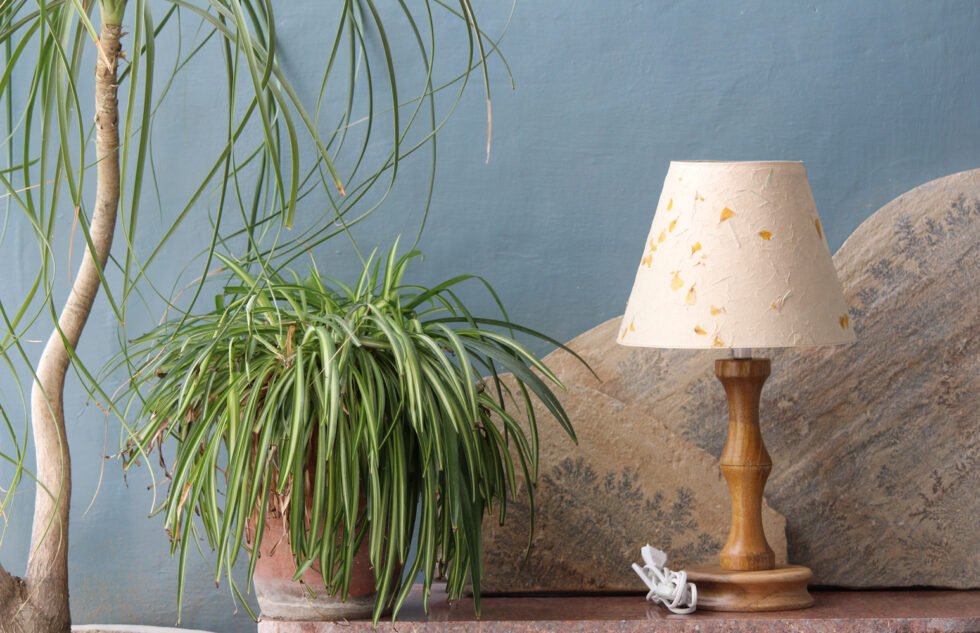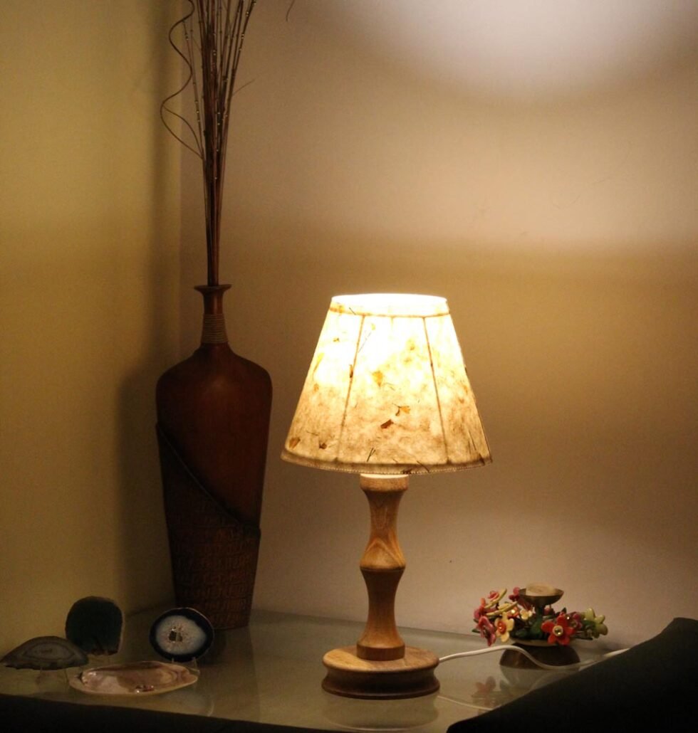Handcrafted Lokta Fiber Paper Lampshade with Wood Base Lamp