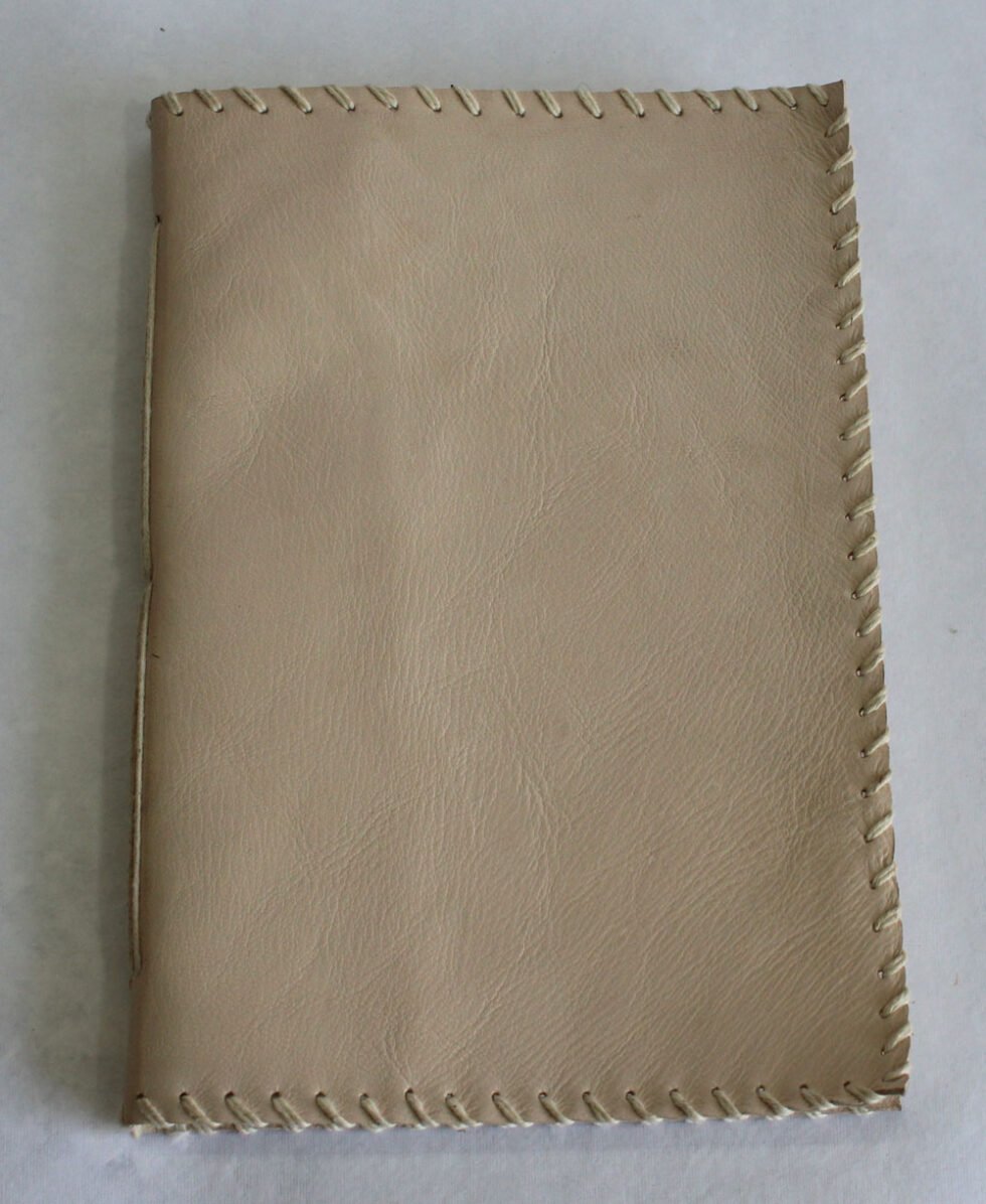 Natural shade genuine leather from goat TC. Journal with 80 sheets / 160 pages of recycled cotton handmade paper. Excellent for smooth writing and a wood free – acid free paper. Hard bound leather journal, can be an excellent corporate gift as well as a premium product.