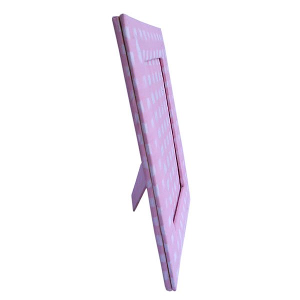Photo frame made of recycled handmade cotton paper with batik print all around it! Further, foam & cardboard is used to shape it up. A lovely ‘Green Life Style’ product for home decoration. Acetate is provided in the middle to protect photo.