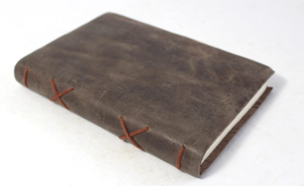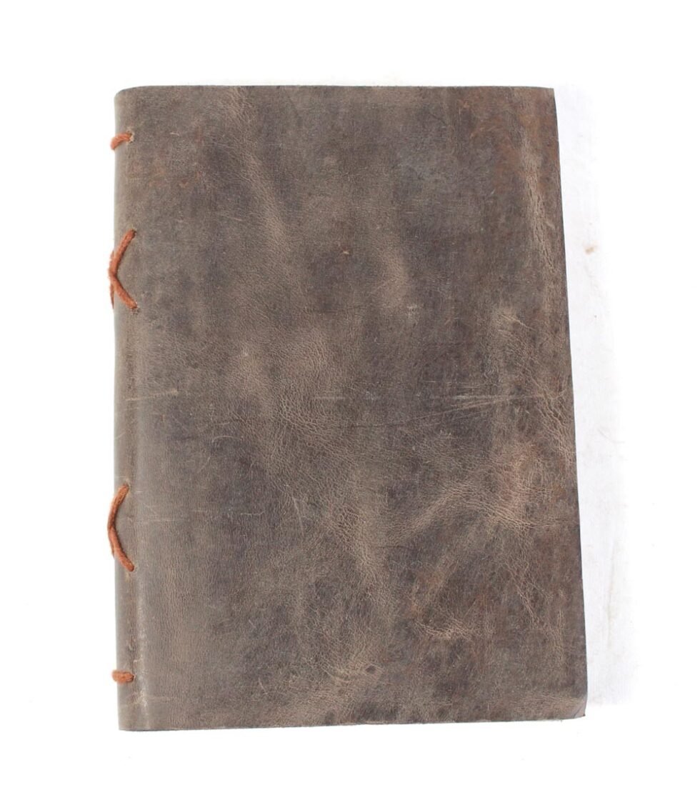 Oil pull up buffalo leather. Thick, rich, softer and antique looking leather gives a very special finish to this gypsy style travel journal. Hand bound journal with cotton thread showing on the spine. Inside is the 72 sheets / 144 pages of handmade recycled cotton papers which is wood free, acid free and does not bleed with ink pen.