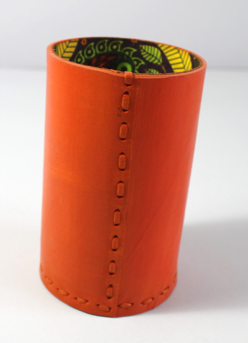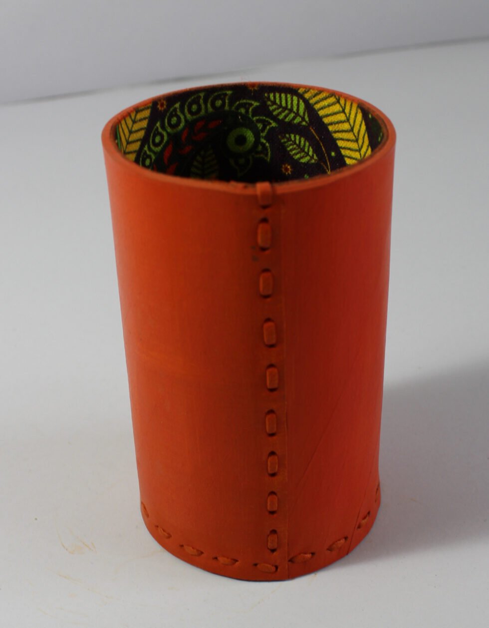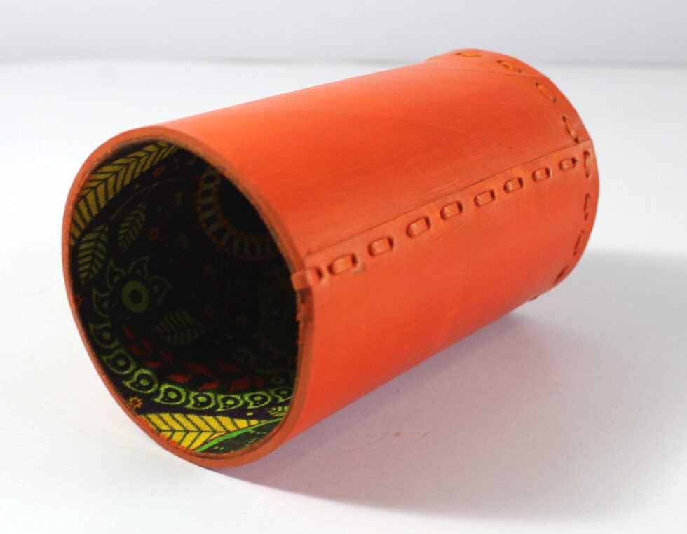 Be the first to review “Orange color leather with hand stitch beautiful pen stand ,”