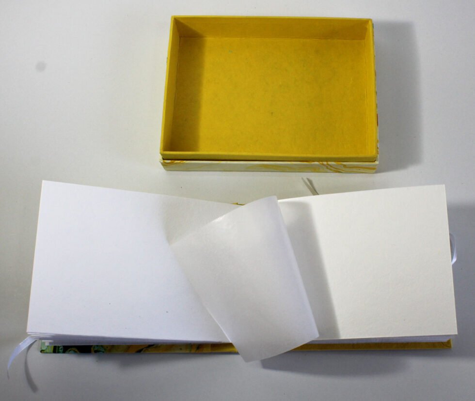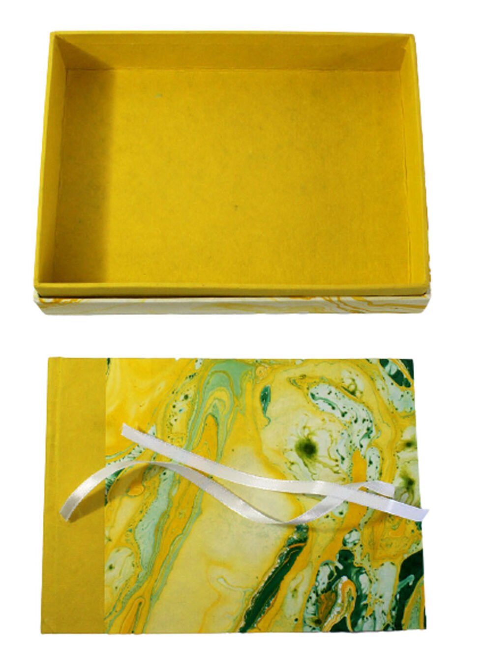 Photo Album with marble paper hard cover packed in a matching box. Classical photo album with 22 thick sheets of 300 GSM of cotton recycled handmade papers to support photo. Each thick sheet is supported by very thin butter paper to protect photo. Totally handcrafted album by specialist artisans bound in a way that one can preserve old memories inside in a beautiful way!