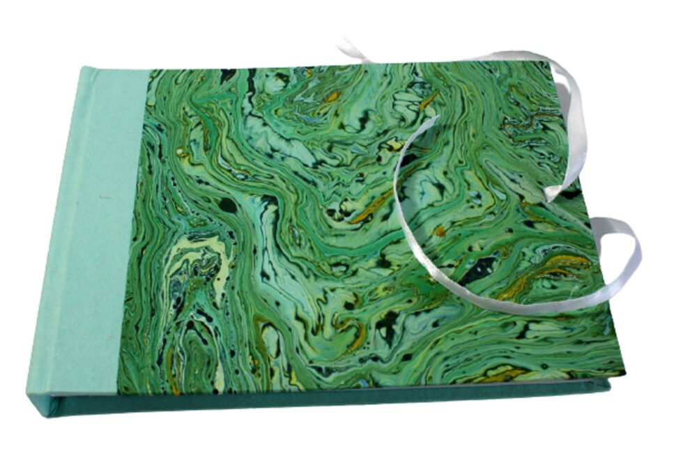 Photo Album with marble paper hard cover packed in a matching box. Classical photo album with 22 thick sheets of 300 GSM of cotton recycled handmade papers to support photo. Each thick sheet is supported by very thin butter paper to protect photo. Totally handcrafted album by specialist artisans bound in a way that one can preserve old memories inside in a beautiful way!