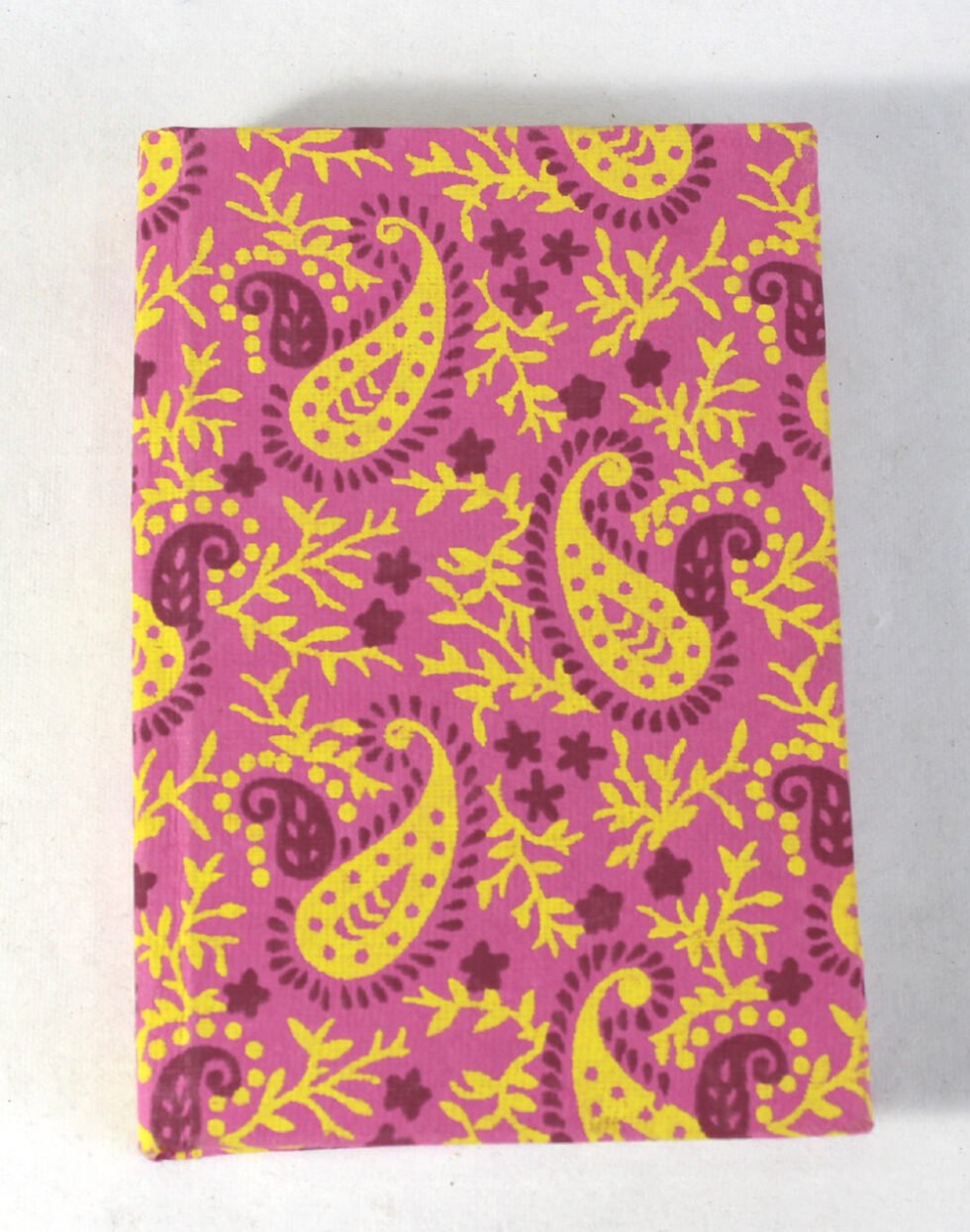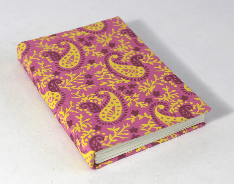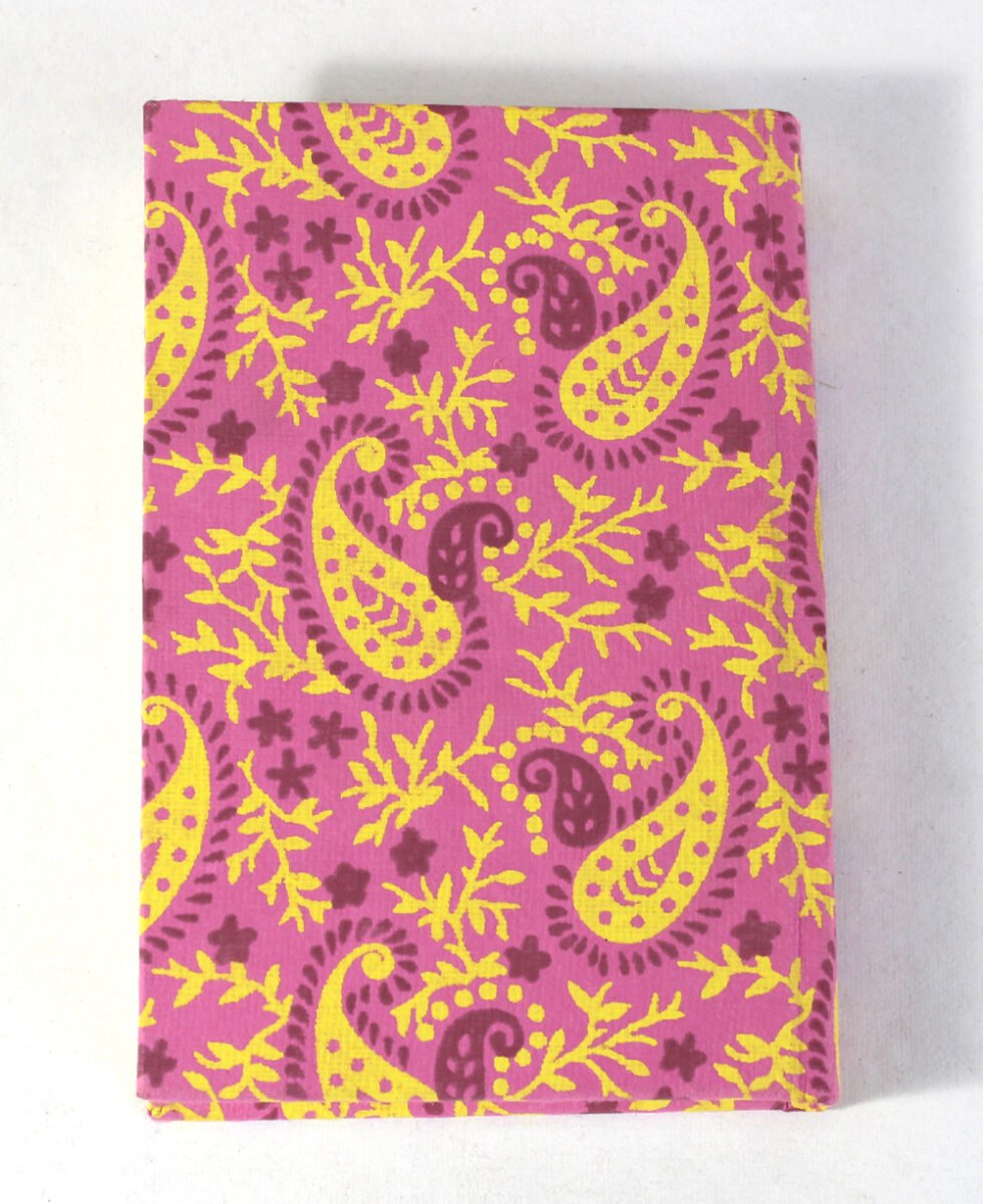 Handcrafted Hard Cover Notebook – Pink & Yellow Paisley Print