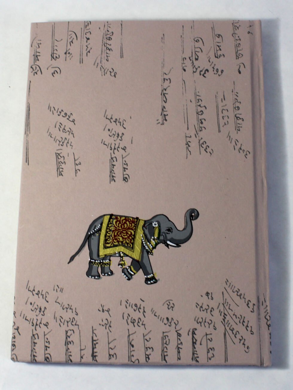 Antique A4 notebook with Bahi-Khata script, Lord Ganesh, and elephant prints — an auspicious Diwali gift with 96 pages of smooth, wood-free paper.