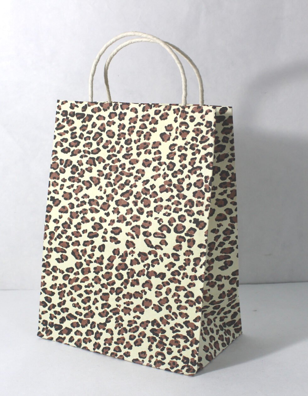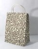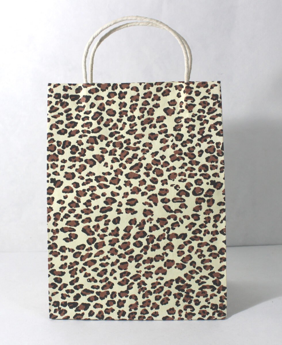 Recycled cotton handmade paper with ink print all around it. Matching paper cord as handles. Collars and bottom of the bags are further strengthened by providing card sheets over there in a concealed way.