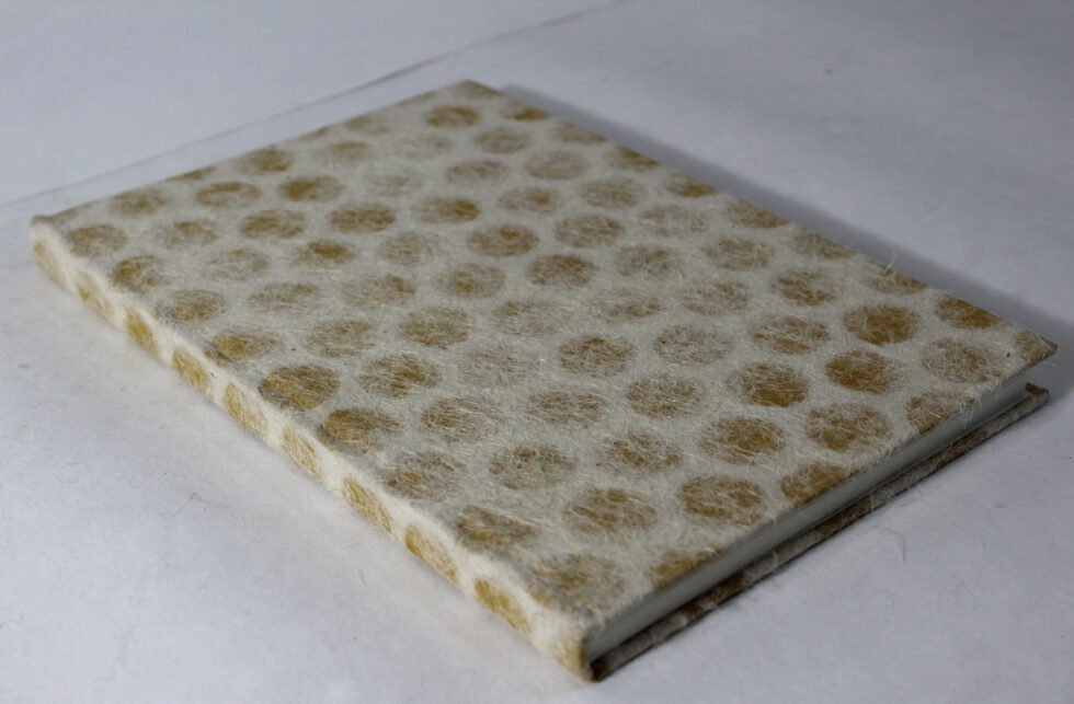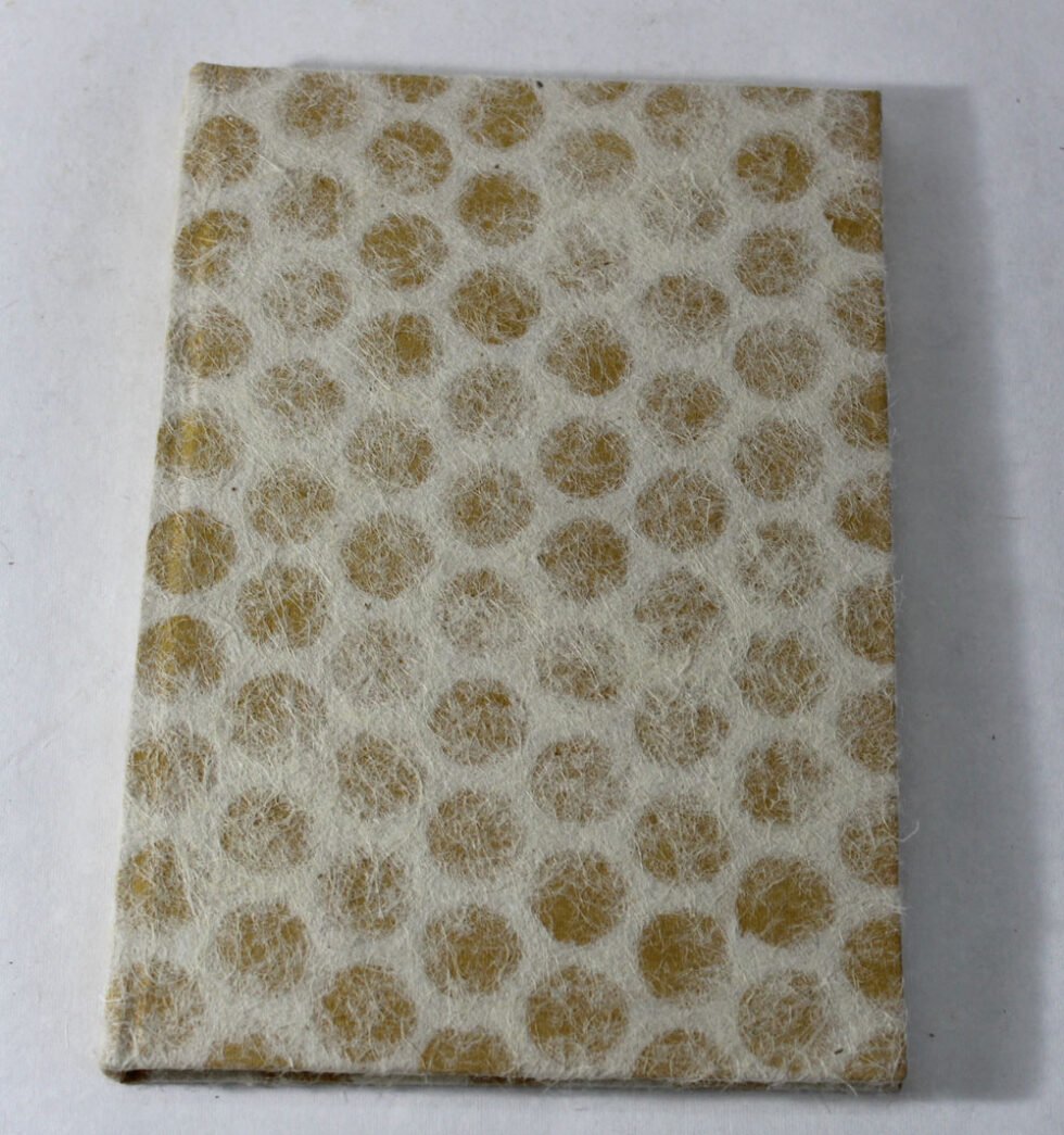 Solid cover notebook with lovely cream color handmade recycled cotton paper 48 sheets / 96 pages inside. Outside is the cardboard cover decorated with lace paper on front and a normal contrasting paper on its back giving it an exquisite look. Paper is acid free,wood free and does not bleed with the ink pen .