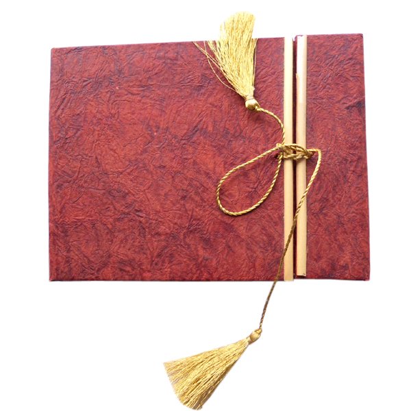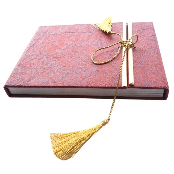 Cream colour paper with leather paper on hard cover. Hard cover notebook with 48 sheets / 96 pages of recycled handmade cotton paper. Hand bound with specialist artisans while the paper is wood free, acid free and never bleeds while using ink pen. Wonderful green life style product – can be branded or customized and excellent item for personal / corporate gift!