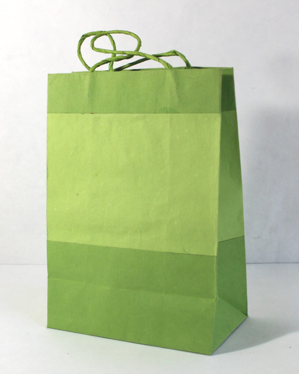 Recycled handmade cotton paper with some ‘tone to tone’ contrast colours. Matching paper cords handles are provided. To strengthen collars and bottom further, separate card sheets are placed inside those.