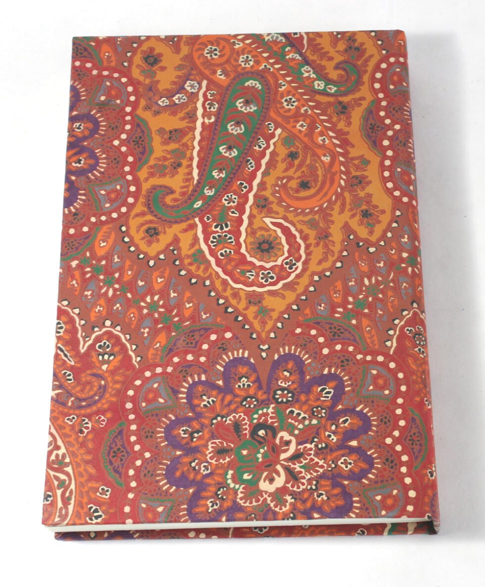 Handmade hand crafted notebook by premium artisans. Exclusive job work done on recycled handmade paper as cover. Inside, 48 sheets / 96 pages of cream colour smooth paper. Lovely paper to write upon, totally wood free, acid free and never bleeds even when written upon by an ink / fountain pen. A beautiful hand crafted notebook with multiple prints / job works on cover paper to make it a beautiful present for many occasions.