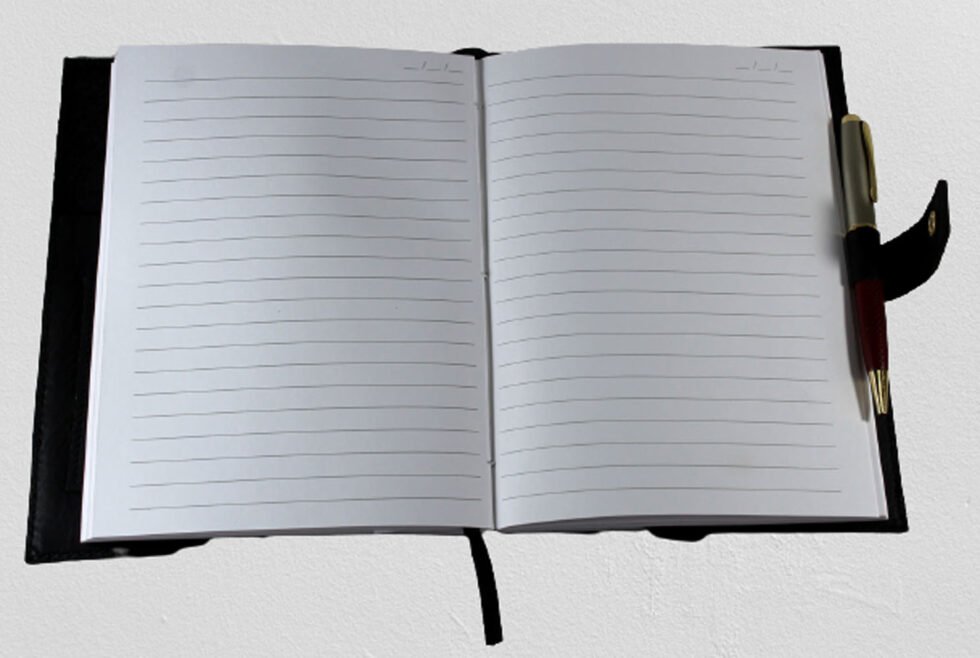 Genuine supple black natural buffalo leather journal with 100 sheets / 200 pages of mill made line print paper. A refillable journal once the inside papers are fully used up – as we do provide the same insert. Inside the front cover, a pocket for credit cards is give. At the back cover inside, a pen loop is provided with a small leather flap closure to protect the sheets inside. This journal is a special gift and a different kind of exclusive corporate gift!