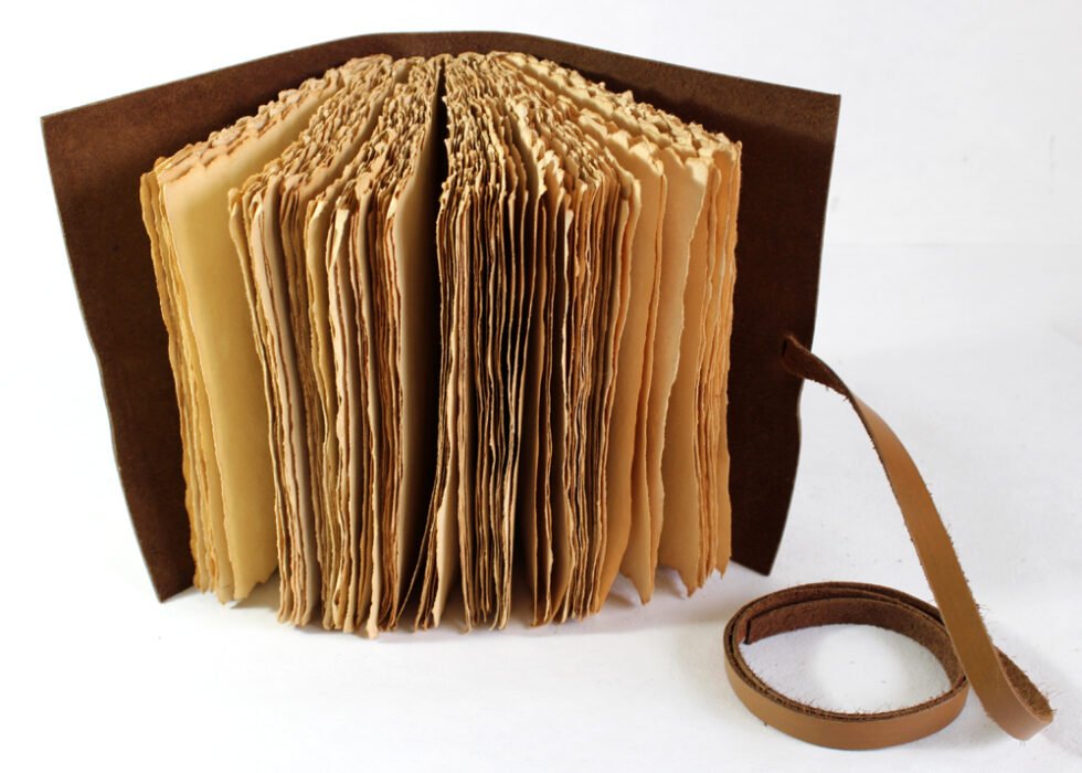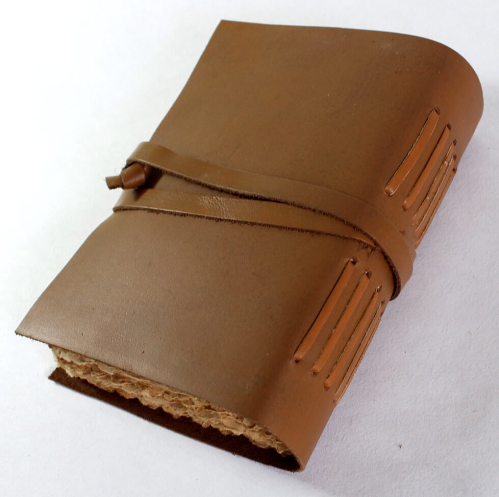 Made from premium buffalo leather, with a wonderful smell, its soft feeling and delicate, yet super tough. Rustic charm with decorative leather strings’ stitching on the spine adds antique magic to this lovely vintage journal. Front cover is plain with an ethnic touch. Draw, write and sketch to your heart’s content on the 120 vintage looking natural edged blank unlined sheets (or 240 pages) of recycled cotton handmade paper. Paper is wood free, acid free and does not bleed with the ink pen! A perfect present for men, women, students, travelers of all age!