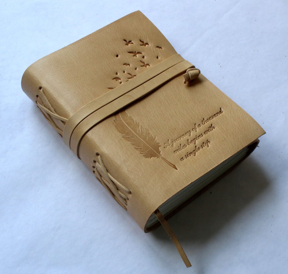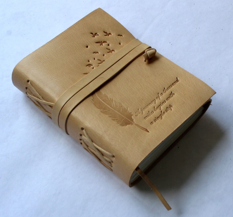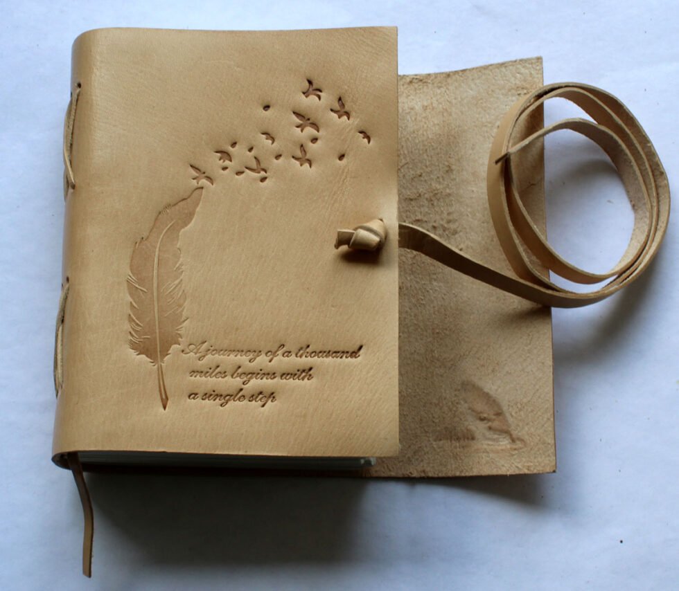 Made from premium buffalo leather, with a wonderful smell, its soft feeling and delicate, yet super tough. Rustic charm with decorative leather strings’ stitching on the spine adds antique magic to this lovely vintage journal. A leather book mark too is given. Front cover is embossed with the feather design beautifully done with the hot stamping. Draw, write and sketch to your heart’s content on the 150 sheets or 240 pages of recycled cotton handmade paper. Paper is wood free, acid free and does not bleed with the ink pen! A perfect present for men, women, students, travelers of all age!