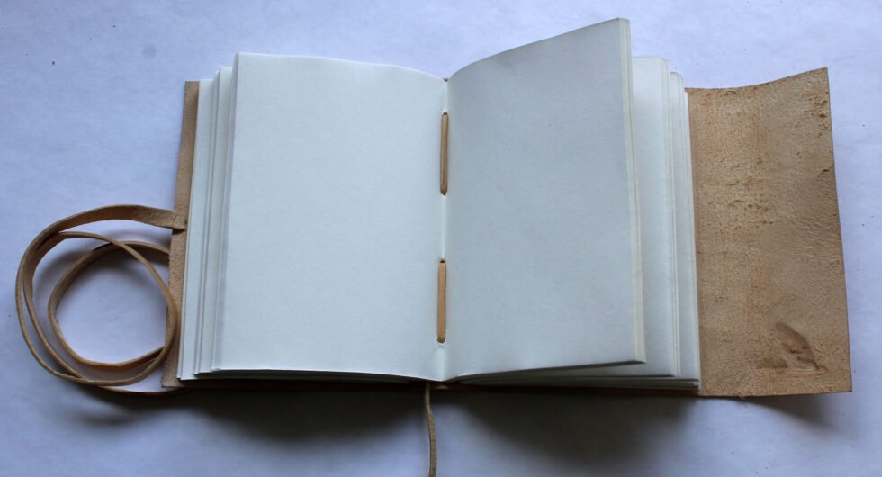 Rustic charm with decorative leather strings’ stitching on the spine adds antique magic to this lovely vintage journal