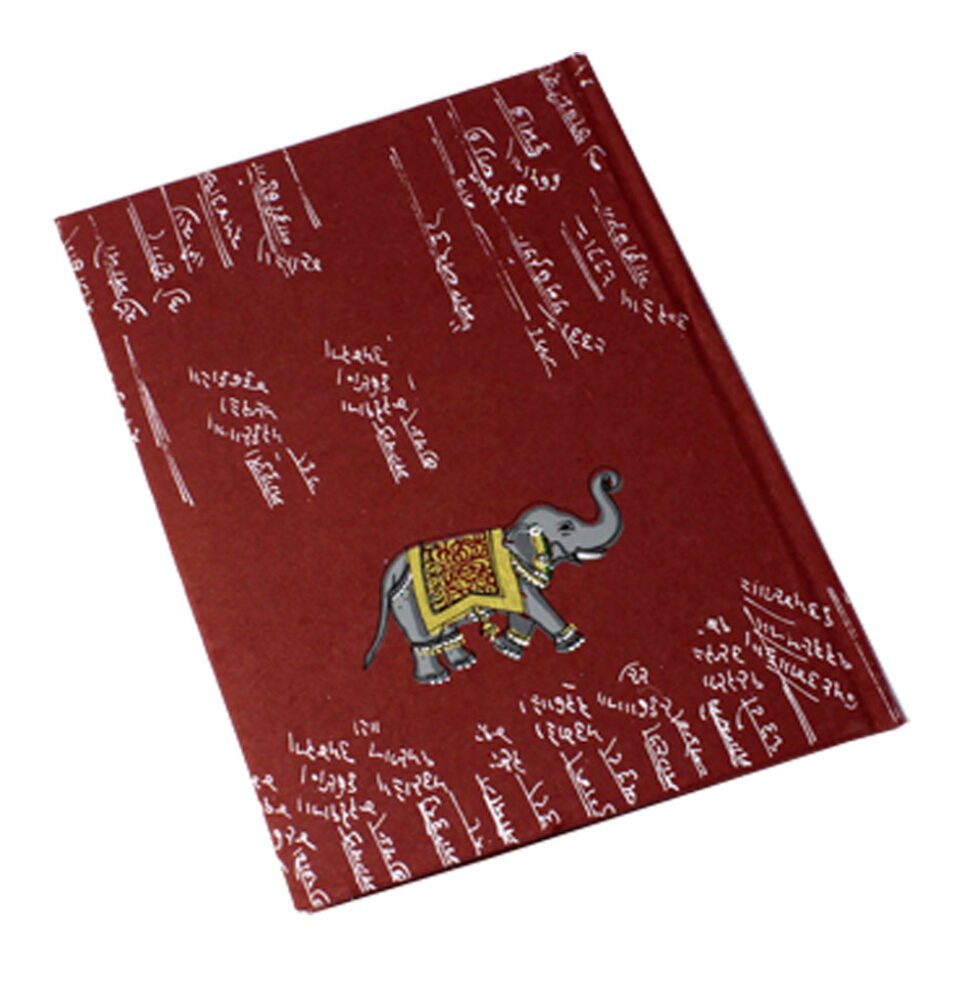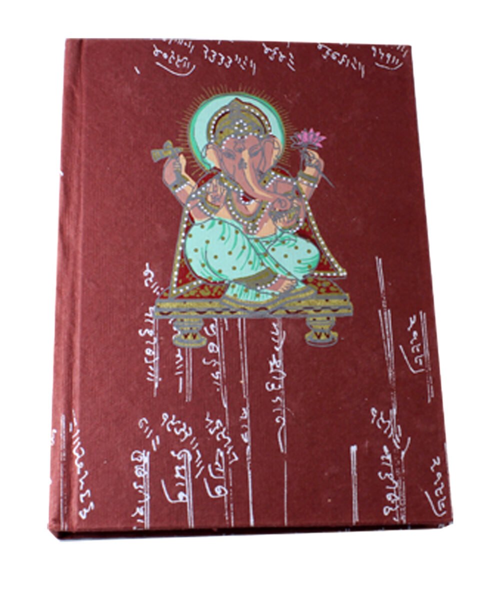 A set of 3 A4 notebooks with vintage ‘Bahi-Khata’ script designs on recycled cotton handmade paper covers. The front features a multicolour, silver-screen print of Ganesh – God of Wealth & Wisdom – while the back displays an auspicious elephant. Each notebook includes a thick cream-coloured, wood-free, acid-free sheet inside both covers, gracefully supporting the 48 sheets (96 pages) of smooth, bleed-proof paper. Perfect for writing, calligraphy, travel journaling, art and craft, or keeping accounts, these notebooks make an elegant and symbolic Diwali gift for someone truly special.
