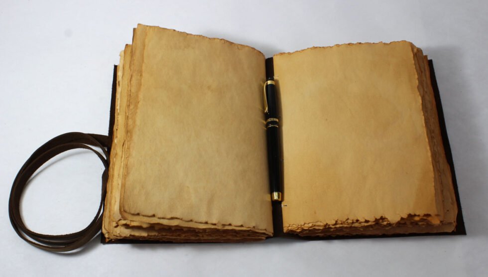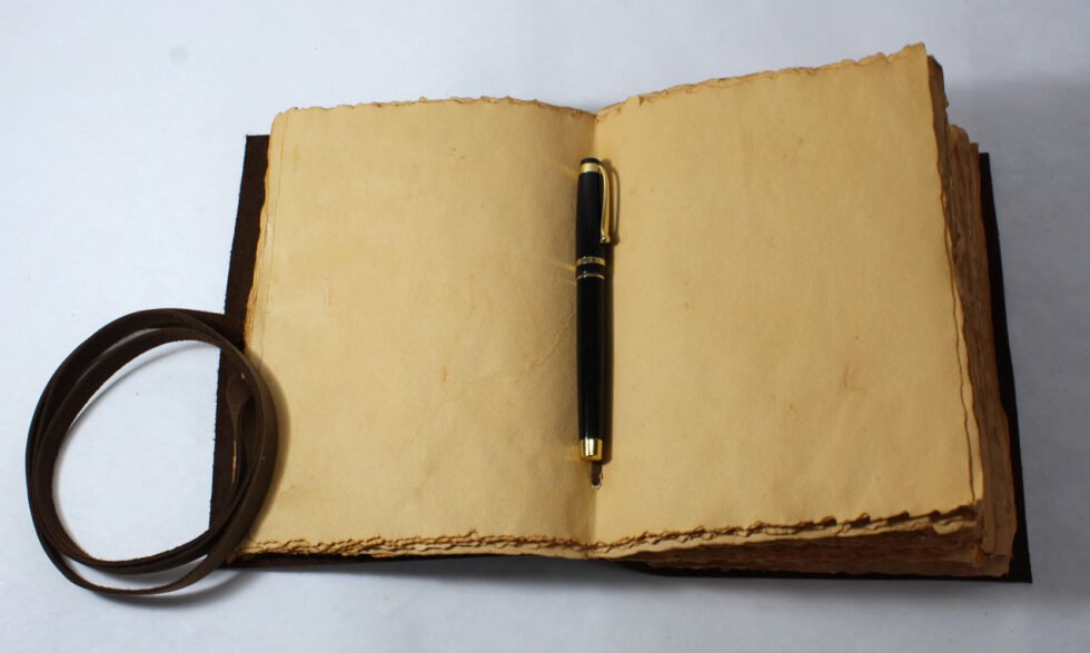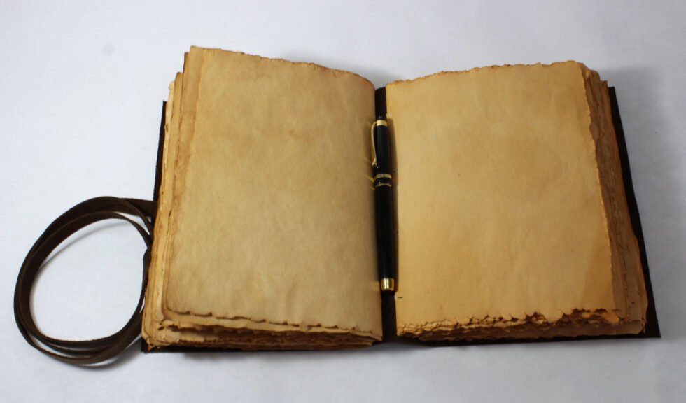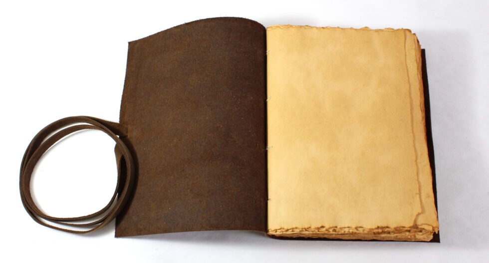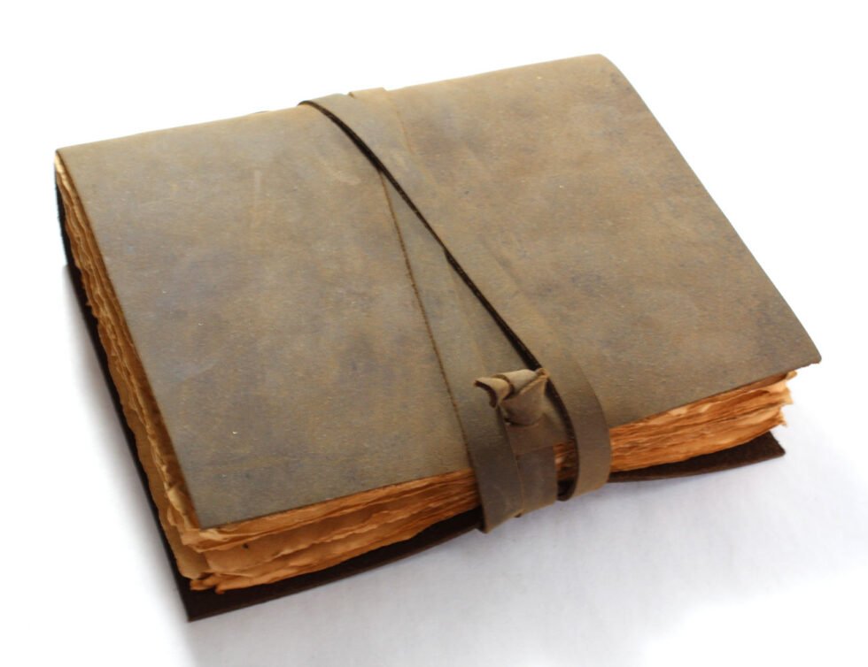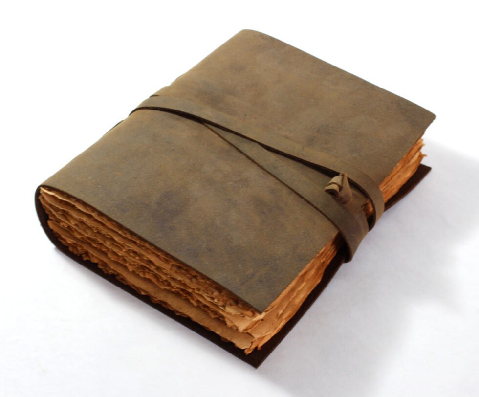 Vintage journal made of leather & paper only as the binding strings are leather too! Soft and supple brown genuine buffalo leather journal with hard bound 120 sheets / 240 pages of recycled handmade cotton paper. Inside, antique aged look, double sided vintage paper made of 120 GSM for durability. Perfect for drawing ancient maps, poetry, medieval-looking writings, menus, themed party & many more! Hand crafted journal with 100% natural leather. The leather is naturally distressed and tanned giving an extra vintage look. A travel journal with rugged & gypsy look, exclusive gift, with the matching strap around it.